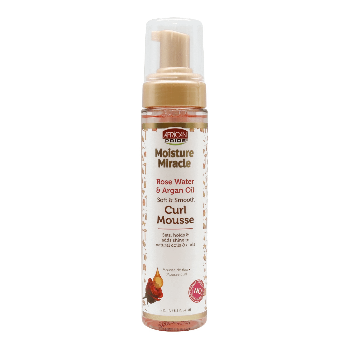 Der African Pride Moisture Miracle Curl Mousse ist das Mousse, das deinen Locken alles gibt, was sie brauchen: Definition, Volumen und flexiblen Halt ohne Crunch. Dieses leichte Mousse ist mit Rosenwasser und Arganöl angereichert – eine traumhafte Kombination, die dein Haar mit Feuchtigkeit versorgt, pflegt und gleichzeitig langanhaltenden Halt mit einem natürlichen Finish bietet.