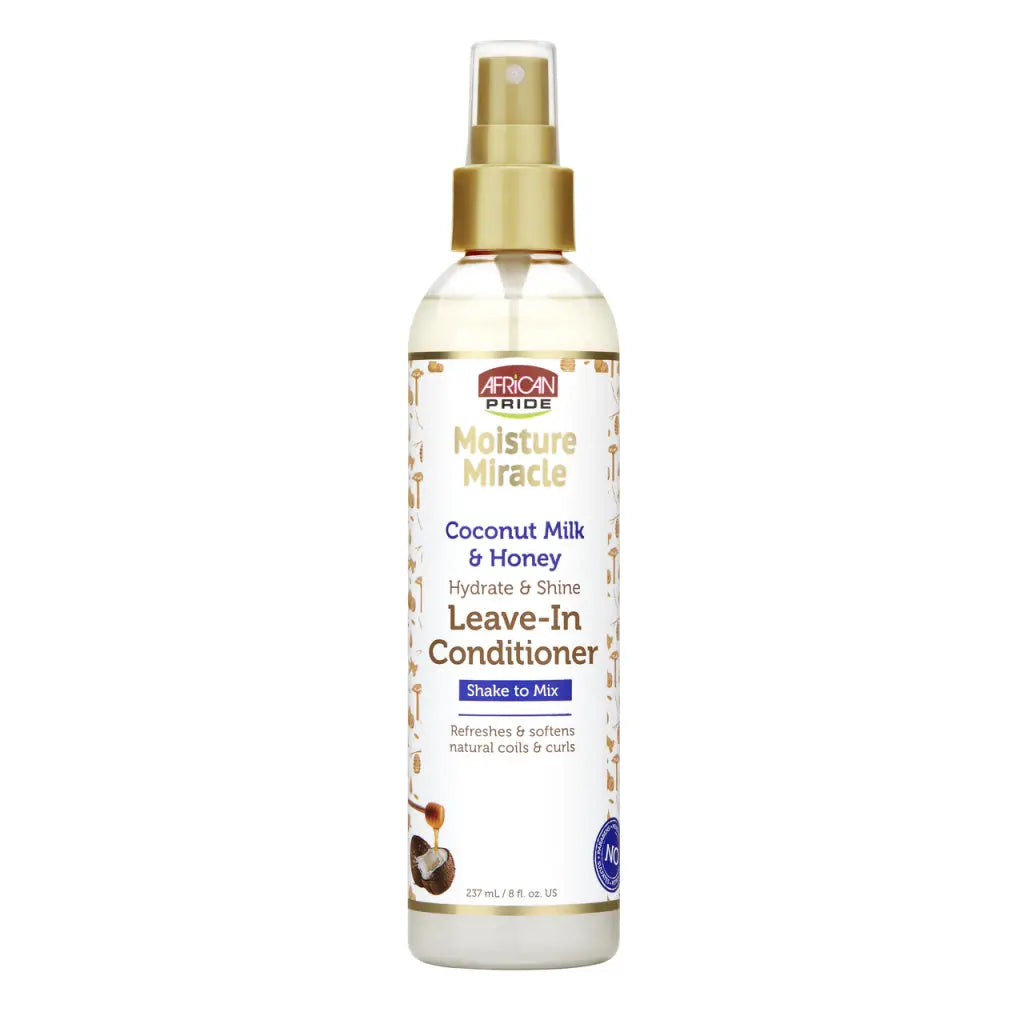 Der African Pride Moisture Miracle Leave-In Conditioner Spray ist deine schnelle Lösung für durstige, kraftlose Locken, die einen Frischekick brauchen. Dieses praktische Spray ist ideal für die tägliche Anwendung und perfekt, wenn dein Haar zusätzliche Feuchtigkeit und Pflege braucht.
