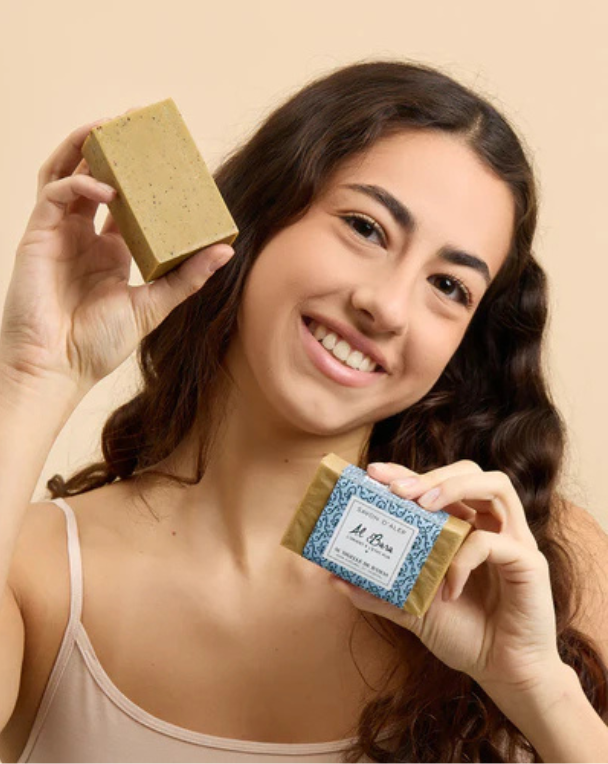 Die Al Bara Aleppo Scrub Zeep Pure Olijfolie Met Zwart Zaad ist ein kraftvolles und natürliches Pflegeritual, inspiriert von orientalischen Traditionen. Diese authentische Aleppo-Seife kombiniert 100 % pflanzliches Olivenöl aus erster Pressung mit Nigella (Schwarzkümmel), einer jahrhundertealten Zutat, die für ihre reinigenden, regenerierenden und antioxidativen Eigenschaften bekannt ist.