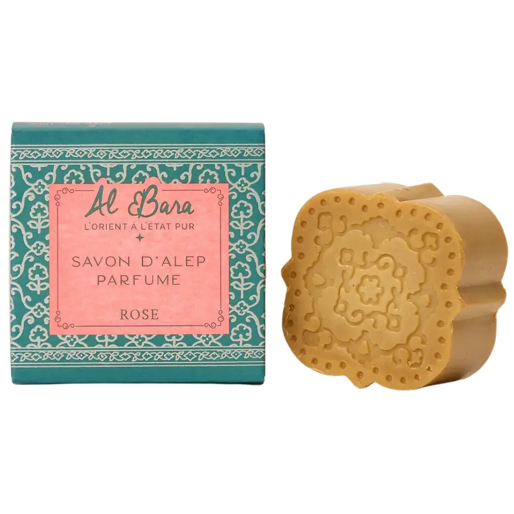Die Al Bara Aleppo Zeep Rozenbloesem ist pure Sanftheit in einem eleganten Stück Seife. Mit ihrem raffinierten, blumigen Duft und den kunstvoll eingravierten orientalischen Motiven ist diese Seife eine Hommage an das traditionelle Handwerk der Seifenmeister aus Aleppo.