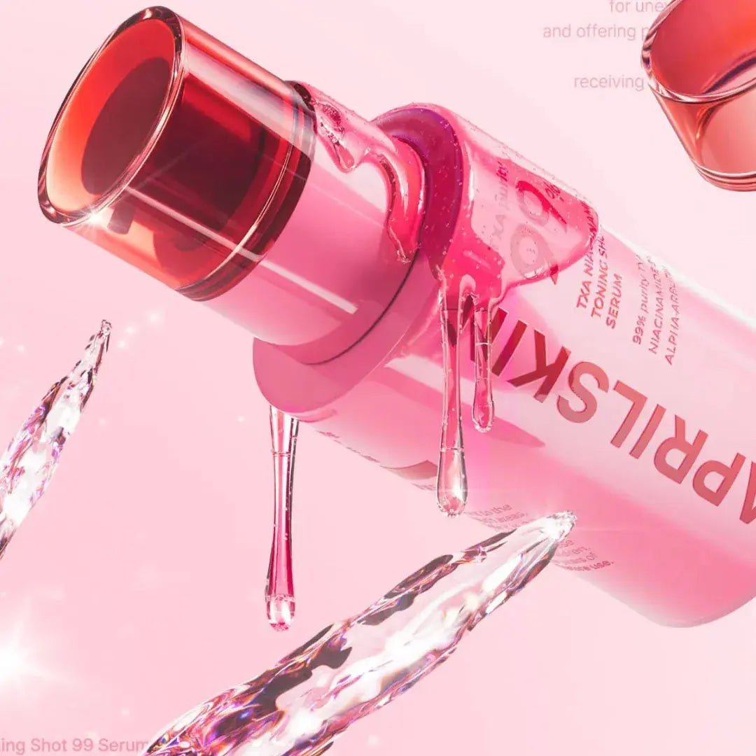 Das APRILSKIN TXA Niacinamide Toning Shot 99 Serum ist dein neuer Favorit, wenn du auf der Suche nach einem strahlenden, ebenmäßigen Teint bist. Dieses kraftvolle, aber sanfte Serum ist vollgepackt mit Tranexamsäure, Niacinamid und Exosomen, die zusammenwirken, um Pigmentflecken zu reduzieren und die Haut aufzuhellen ganz ohne Irritation.