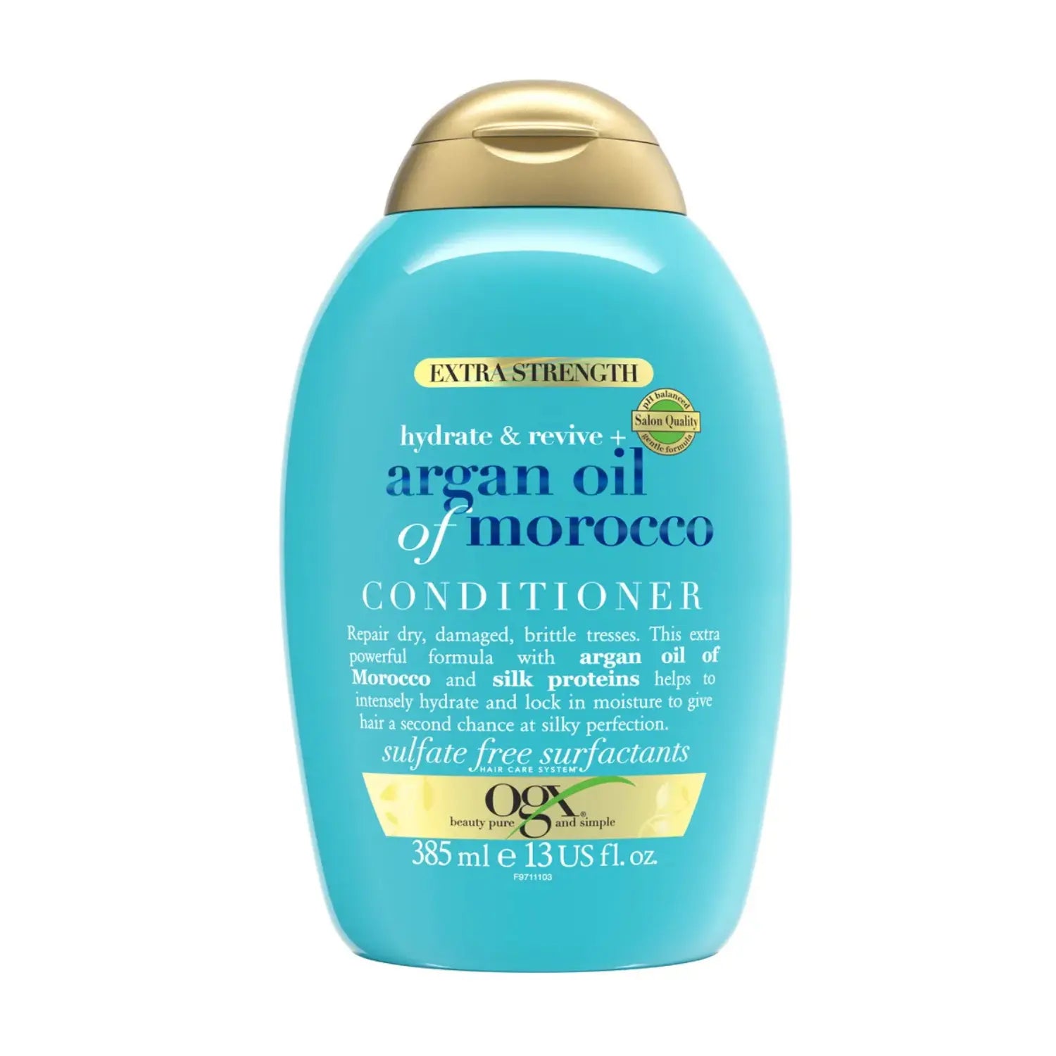 Der OGX Hydrate & Revive Argan Oil of Morocco Conditioner ist dein Retter bei trockenem, strapaziertem oder brüchigem Haar! Dieser intensiv pflegende Conditioner ist vollgepackt mit wertvollem marokkanischem Arganöl und Seidenproteinen, die dein Haar tiefenwirksam mit Feuchtigkeit versorgen, reparieren und stärken. Das Ergebnis?