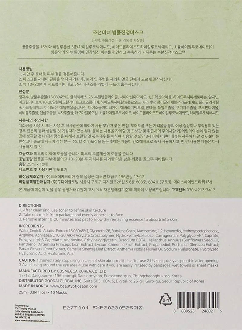 Die Maske enthält eine hohe Konzentration von 15 % Centella-Extrakt, der die Haut beruhigt, mit Feuchtigkeit versorgt und bei der Regeneration unterstützt. Zusätzlich enthält sie drei verschiedene Arten von Hyaluronsäure, die tief in die Haut eindringen und intensiv Feuchtigkeit spenden. Außerdem enthält diese Maske traditionelle Inhaltsstoffe aus der koreanischen Kräutermedizin wie Beifuß, Ginseng und Goji-Beeren, die die Haut nähren.
