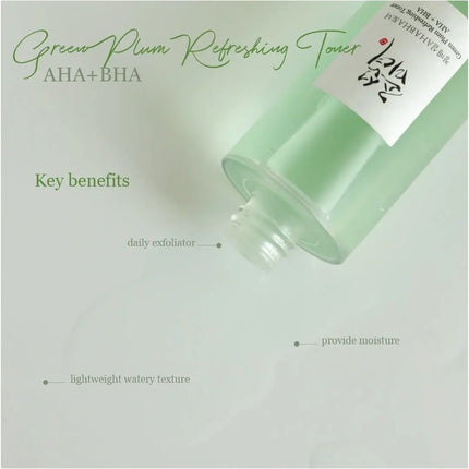 Die Schönheit von Joseon Green Plum Refreshing Toner: AHA + BHA ist ein Peeling-Toner für den täglichen Gebrauch. Dieser Toner ist für alle Hauttypen geeignet, aber bei sehr empfindlicher Haut ist es am besten, zuerst einen Patch-Test zu machen.