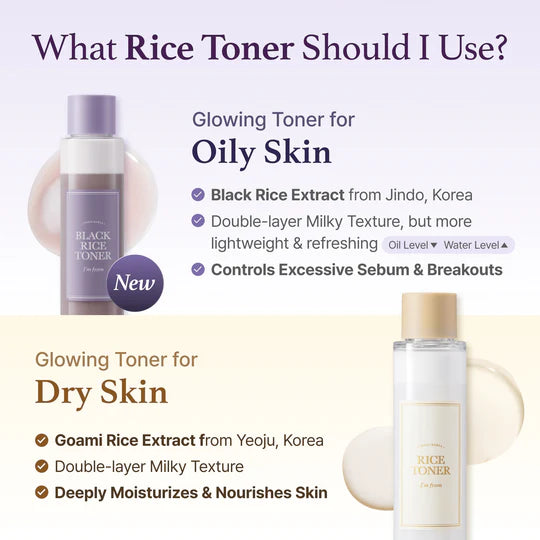 Der I'm From Black Rice Toner 30 ml ist ein erfrischender, leichter Toner, der speziell für fettige und zu Akne neigende Haut entwickelt wurde. Diese Next-Gen-Version des beliebten Rice Toners kombiniert eine Zwei-Phasen-Formel mit fermentiertem schwarzem Reis für einen wunderschönen Glow – ganz ohne fettiges Gefühl.