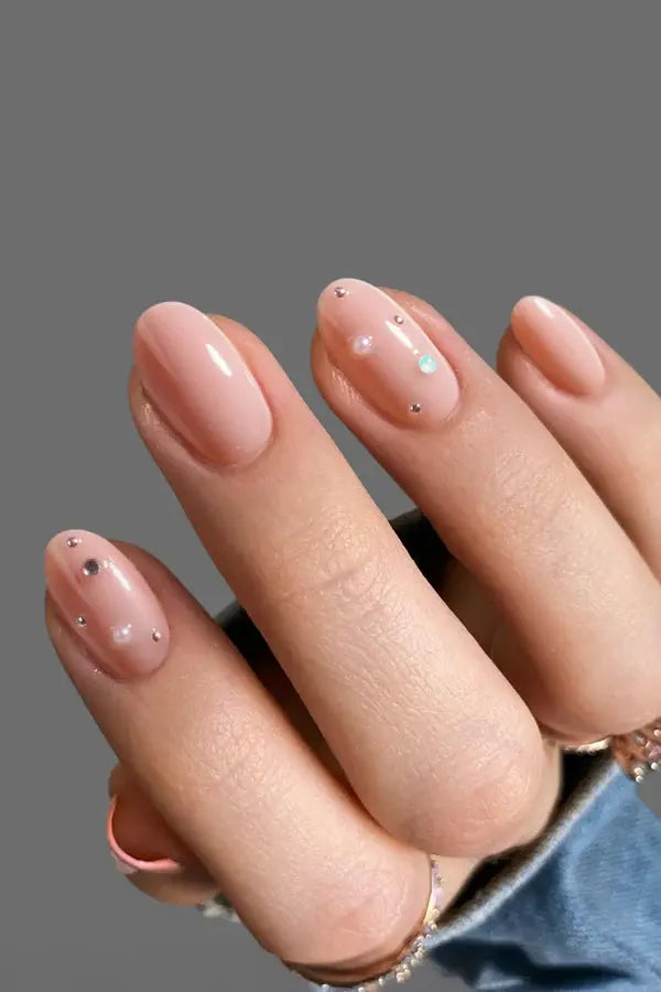 - Nude-Basis mit Studs und Pearl-Akzenten
