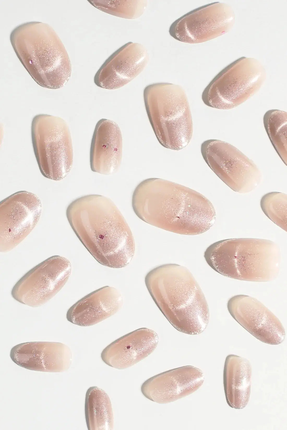 Die Bonmuz Press-On Nails Glace strahlen einen sanften Shimmer aus, der an gefrorene Eleganz erinnert. Die zarte Nude Pink Basis ist mit einem Schleier aus ultra feiner Sparkle veredelt, als würden deine Nägel einen subtilen Frost erhalten.