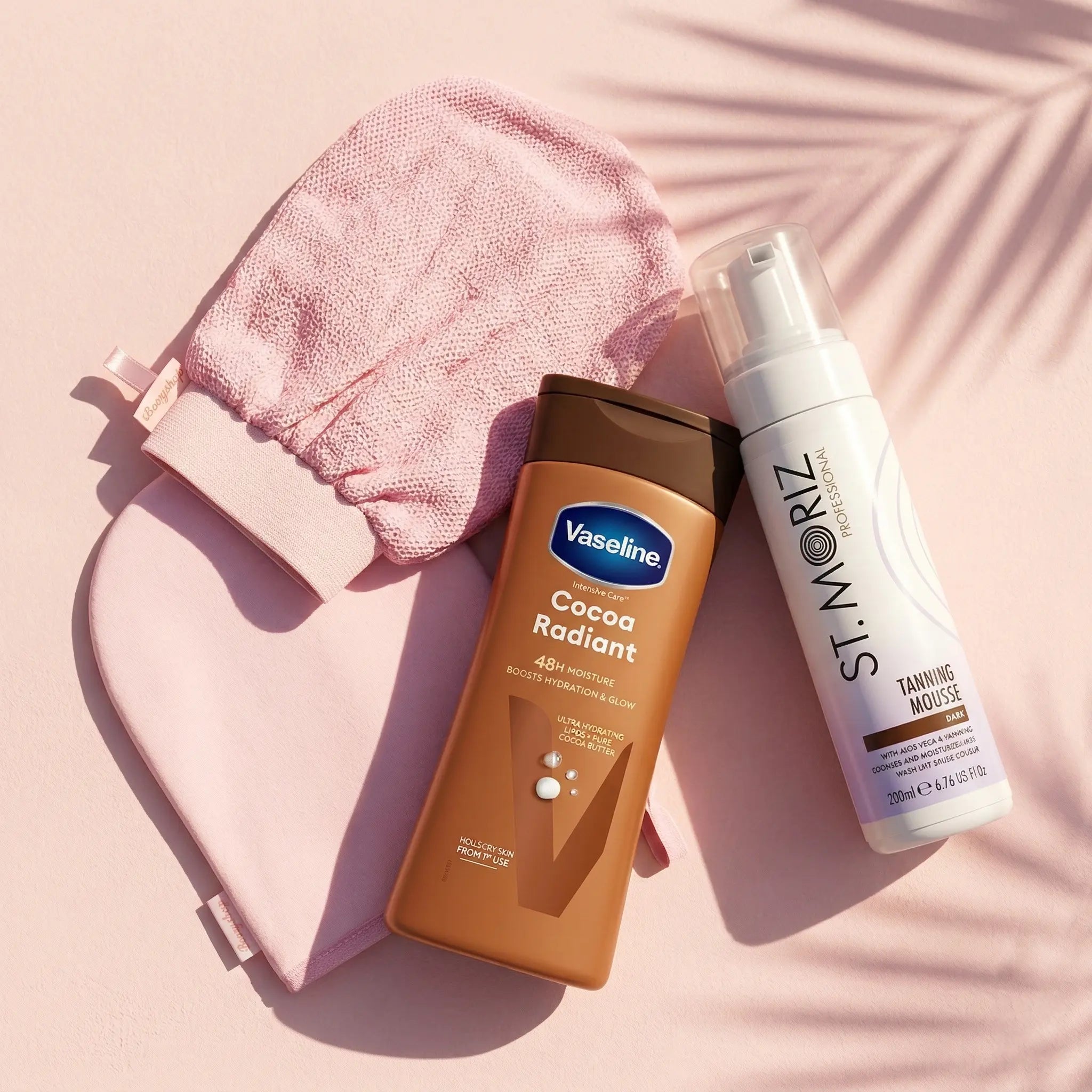 Die Tanning Mousse lässt sich mühelos mit dem Tanning Mitt auftragen und sorgt für ein streifenfreies, professionelles Ergebnis ohne verfärbte Hände. Und um deine Haut weich und hydratisiert zu halten, verwendest du die Vaseline Intensive Care Cocoa Radiant Body Lotion. Das Ergebnis? Eine glatte, hydratisierte Haut mit einem wunderschönen bronzed Glow, der länger strahlend bleibt!