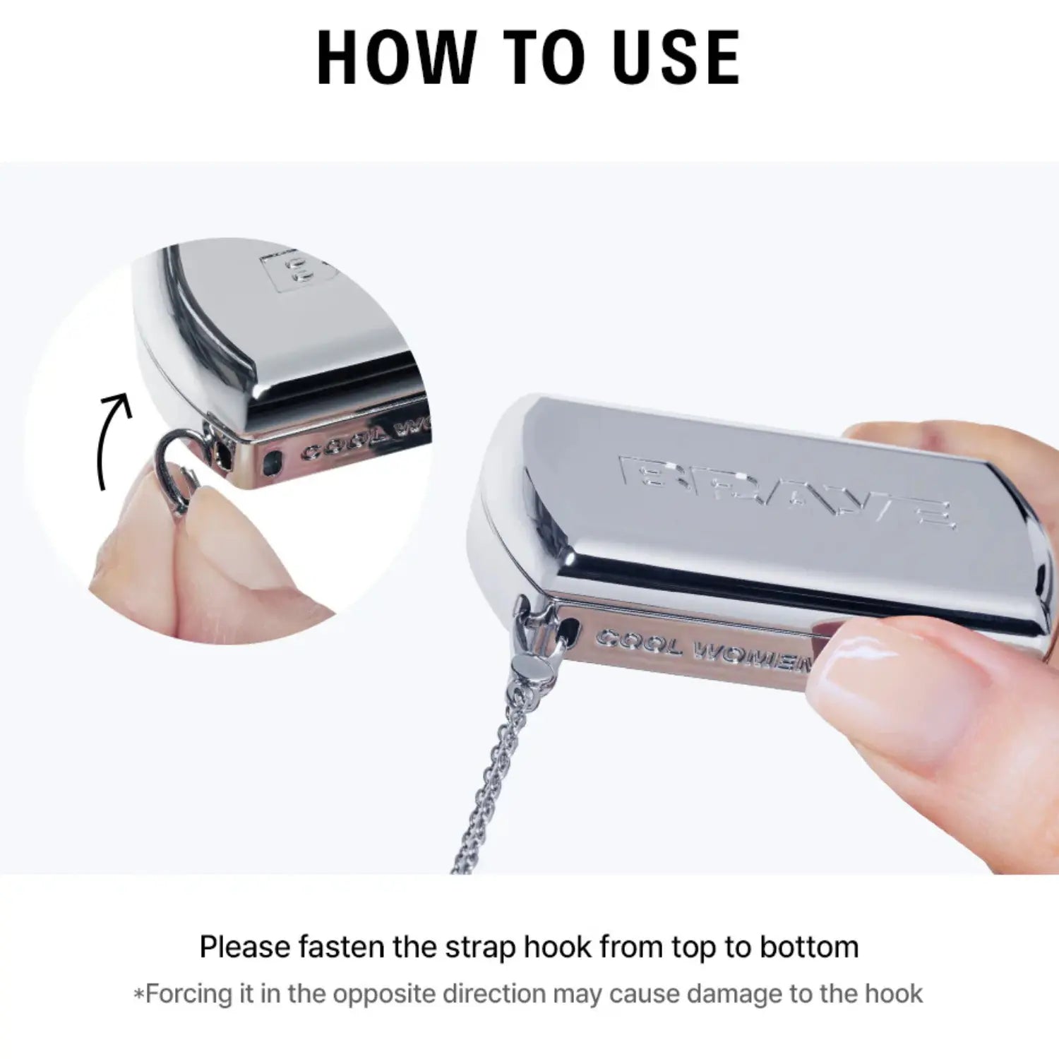 Dank der verstellbaren Länge kannst du ihn als Crossbody-Strap, stylische Kette oder als auffälliges Layering-Teil tragen. Das 2-Wege-Verstell-System ermöglicht einfaches Wechseln zwischen verschiedenen Tragearten, während das auffällige silberne Design deinem Outfit sofort mehr Ausdruck verleiht. Hinweis: Achte darauf, die Haken in die richtige Richtung zu befestigen und ziehe nicht zu stark, um Beschädigungen zu vermeiden.