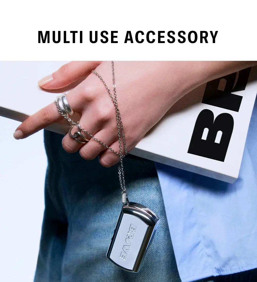 - kann als Halskette, Kette oder Taschenriemen getragen werden