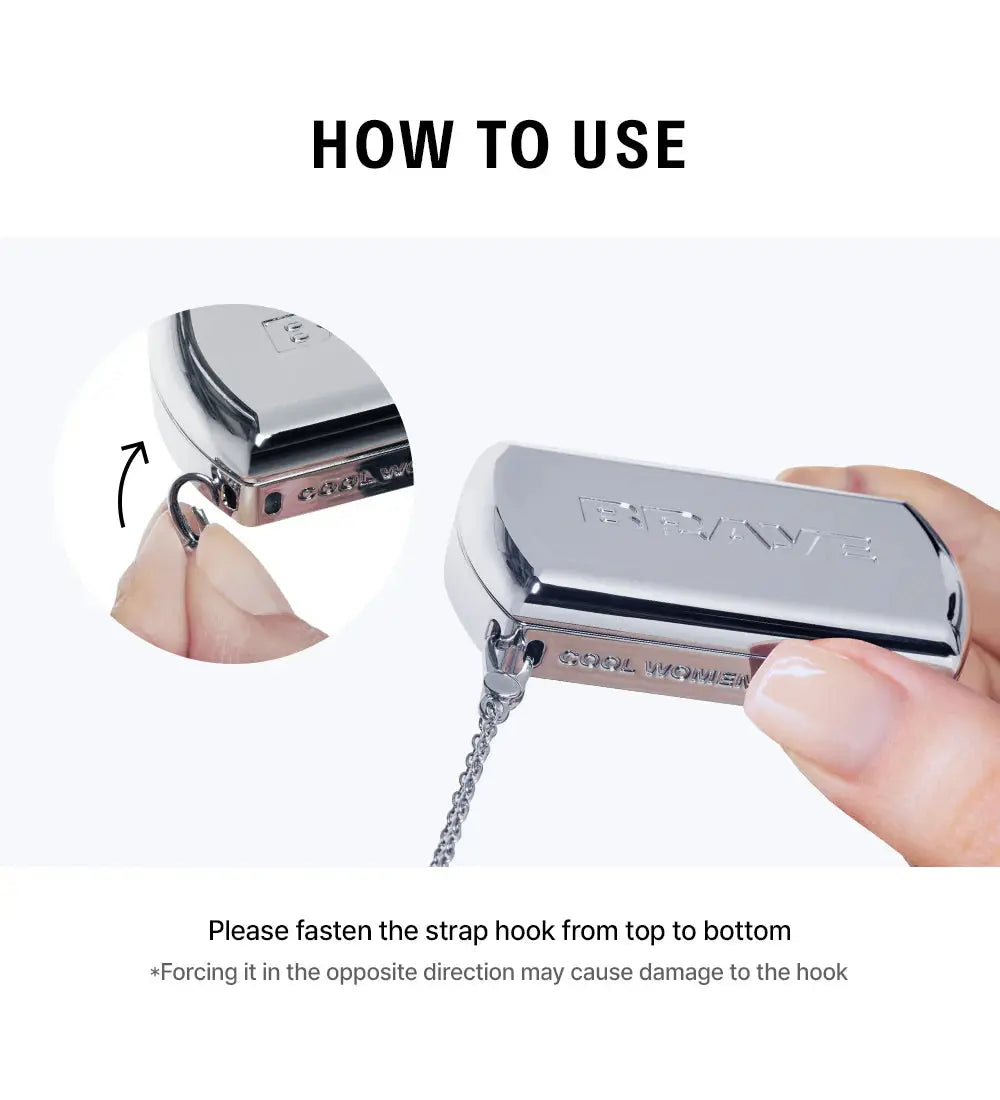 Wenn du den Strap am Lipsleek befestigst, wird dein Produkt sofort zu einem tragbaren Beauty-Statement, das genauso vielseitig ist wie du. Achte beim Befestigen darauf, den Strap in der richtigen Richtung einzuhaken, um Schäden an den Haken zu vermeiden. Kombiniere ihn mit anderen Straps oder Schmuckstücken für einen individuellen Look unterwegs!