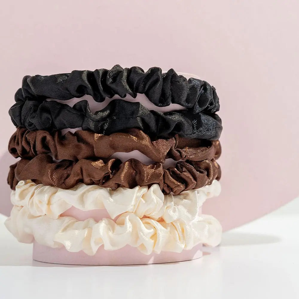Die Brushworks Skinny Satin Scrunchies sind deine neuen Lieblings Hair Essentials für einen stilvollen und zugleich sanften Hair Look. Dank des satinierten Materials sind diese Scrunchies besonders schonend für dein Haar und helfen, Reibung, Knicke und Haarbruch zu reduzieren.