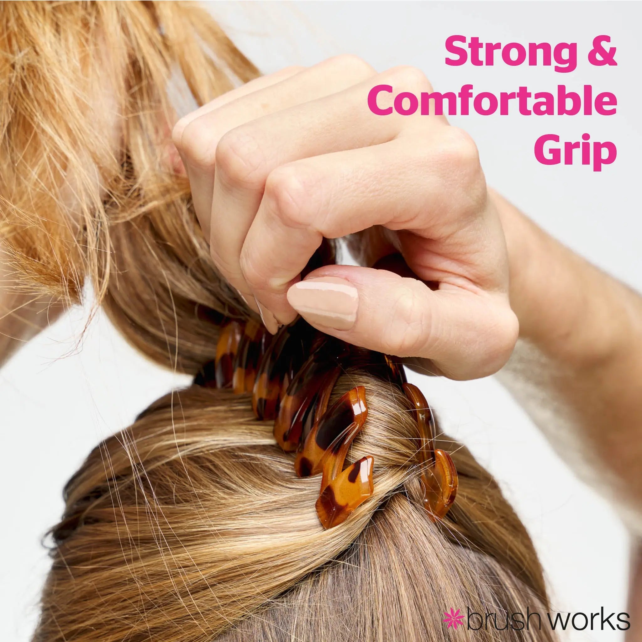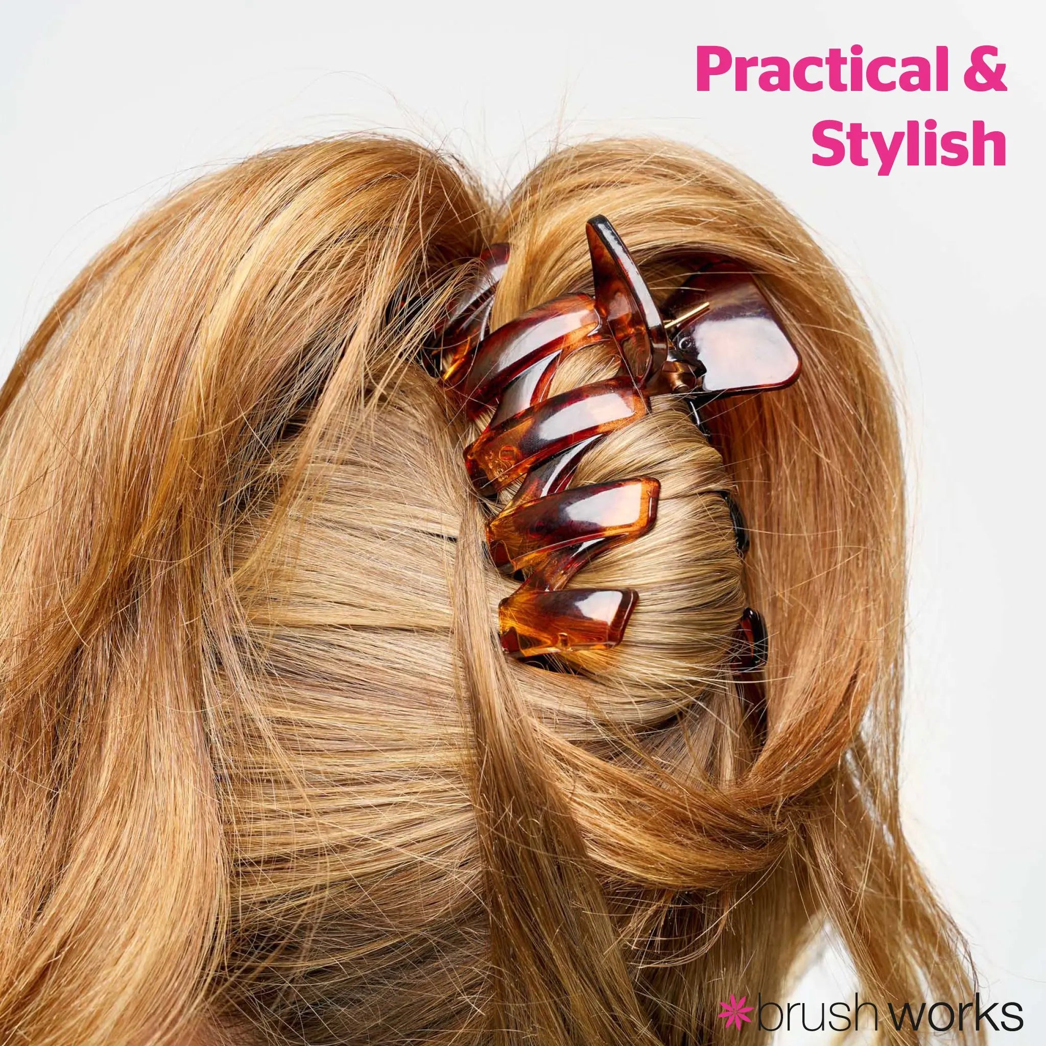 Die Brushworks Tortoiseshell Claw Clips 3 Pack sind die perfekten Accessoires für mühelose und stilvolle Hair Looks. Egal ob du dich für ein elegantes Updo, einen lässigen Half-up Look entscheidest oder dein Haar schnell hochstecken möchtest, diese Clips machen es super einfach und sehen immer chic aus.