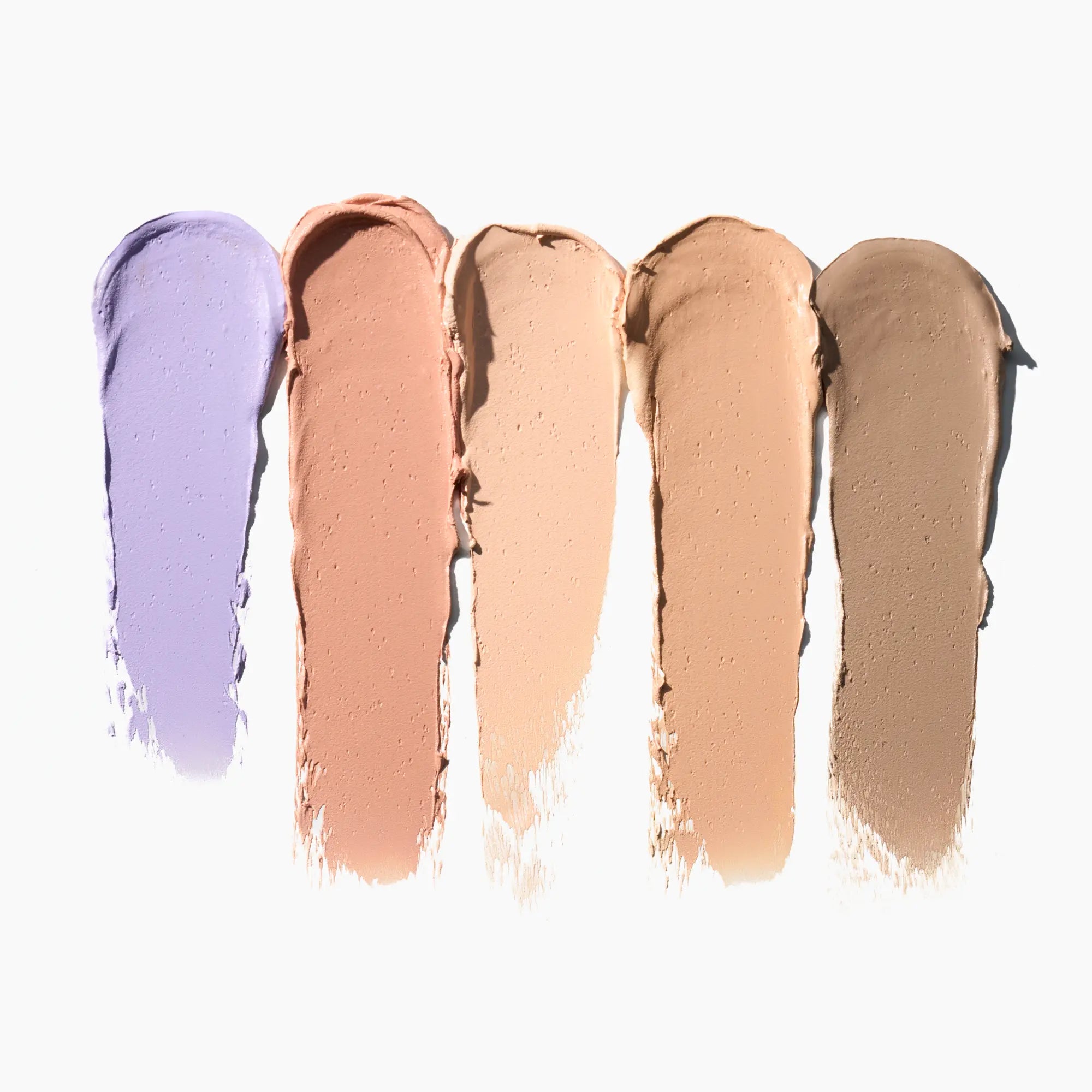 Der violette Ton bringt einen fahlen Teint zum Strahlen und neutralisiert gelbliche Untertöne, während der Pfirsichton perfekt zum Kaschieren von dunklen Augenringen und bläulichen Verfärbungen ist. Die beigen Nuancen sind ideal zum Abdecken von Unreinheiten, Highlighten oder für zusätzliche Deckkraft, wo nötig. Alles lässt sich wunderschön verblenden und hinterlässt ein mattes, langanhaltendes Finish, das sich nicht in Fältchen absetzt. Ob für ein schnelles Touch-up oder eine Full-Glam-Base: Diese Palette ist dein multitaskingfähiger Held!