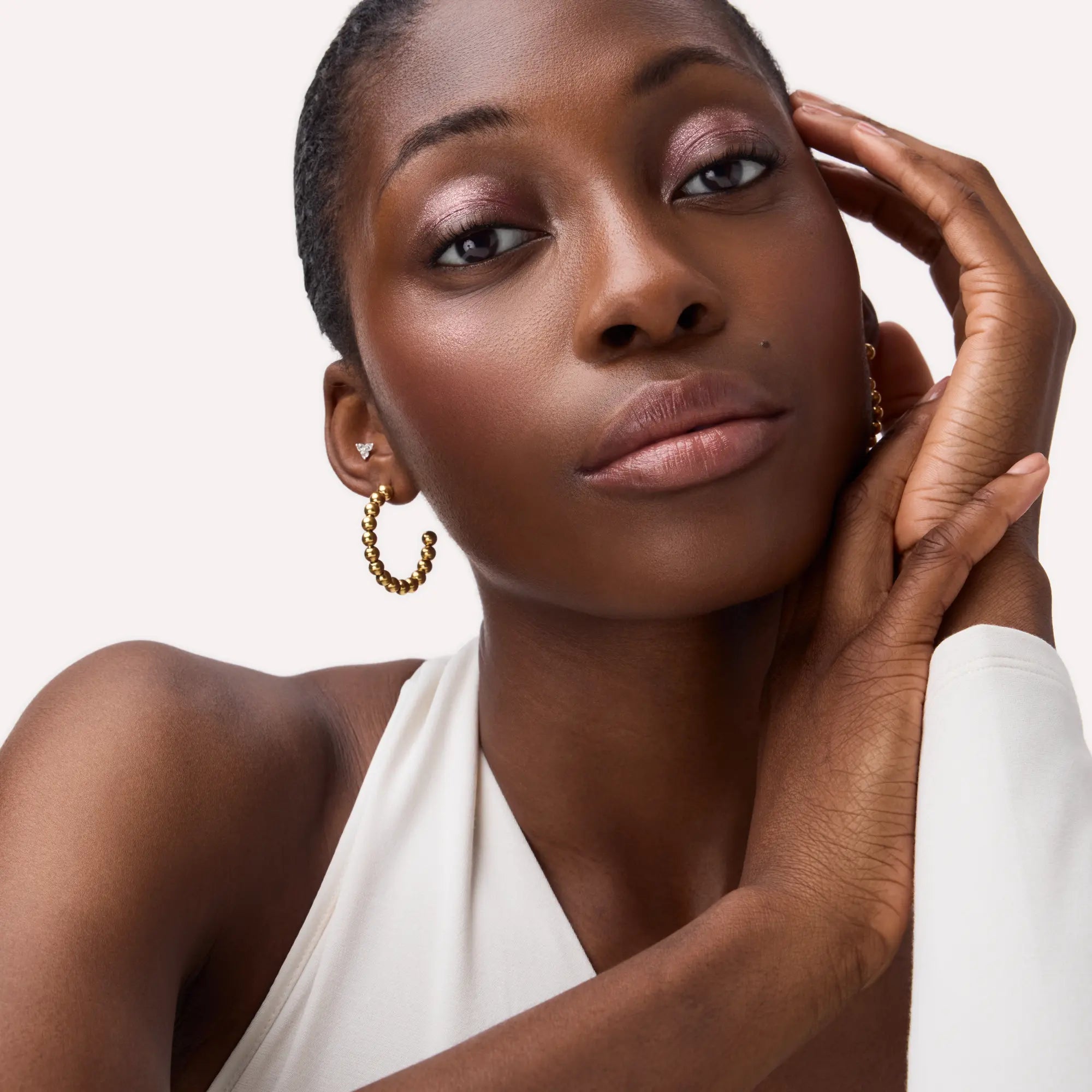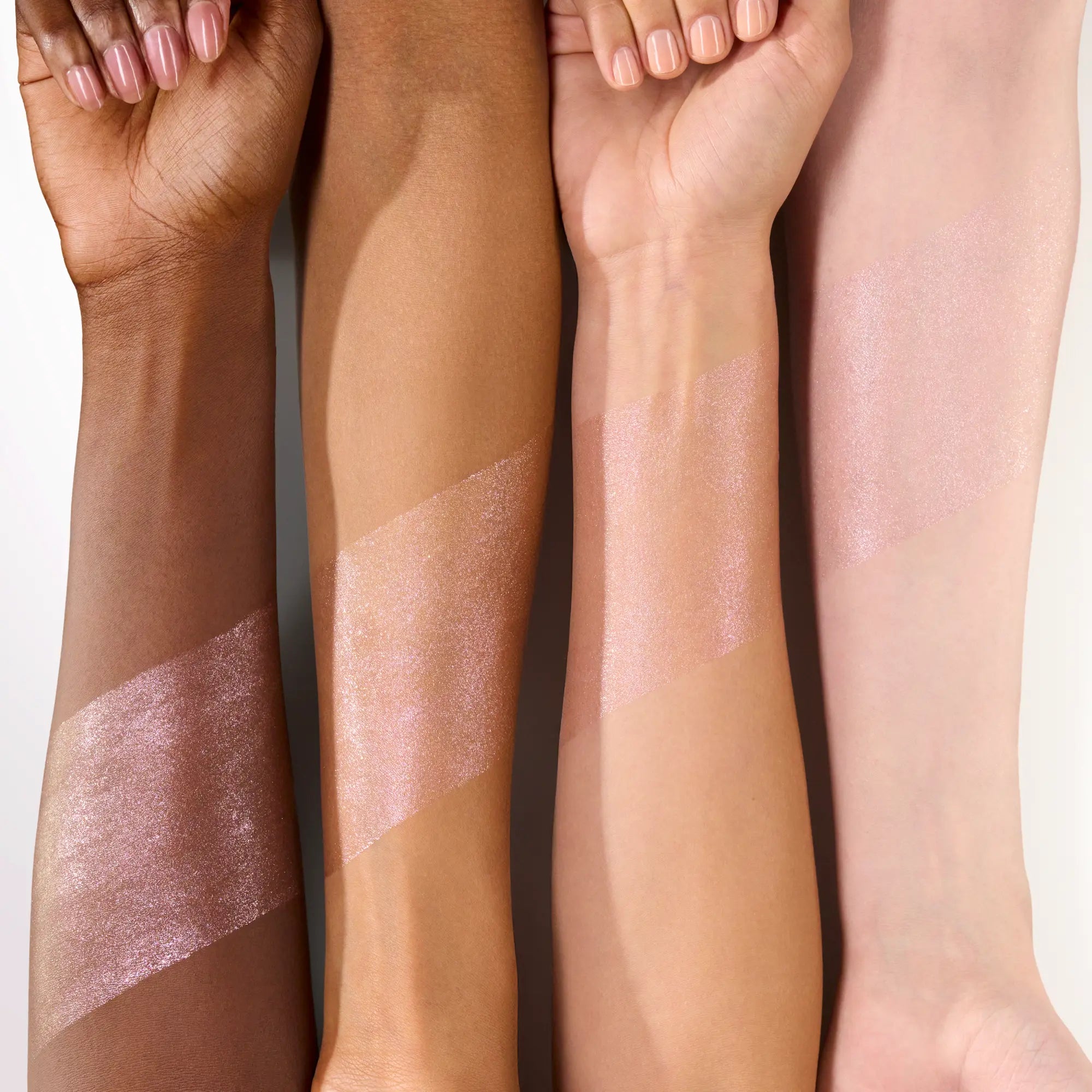 Die wasserbasierte Formel fühlt sich beim Auftragen angenehm kühlend an (hello, fresh skin!) und lässt sich superleicht mit den Fingern oder einem Pinsel verblenden. Verwende ihn auf den Wangenknochen, dem Nasenrücken, dem Amorbogen oder sogar auf Schlüsselbein und Schultern für das gewisse Extra an Glamour. Kompakt, cremig und shiny: dieser Stick ist ein echtes Must-Have!