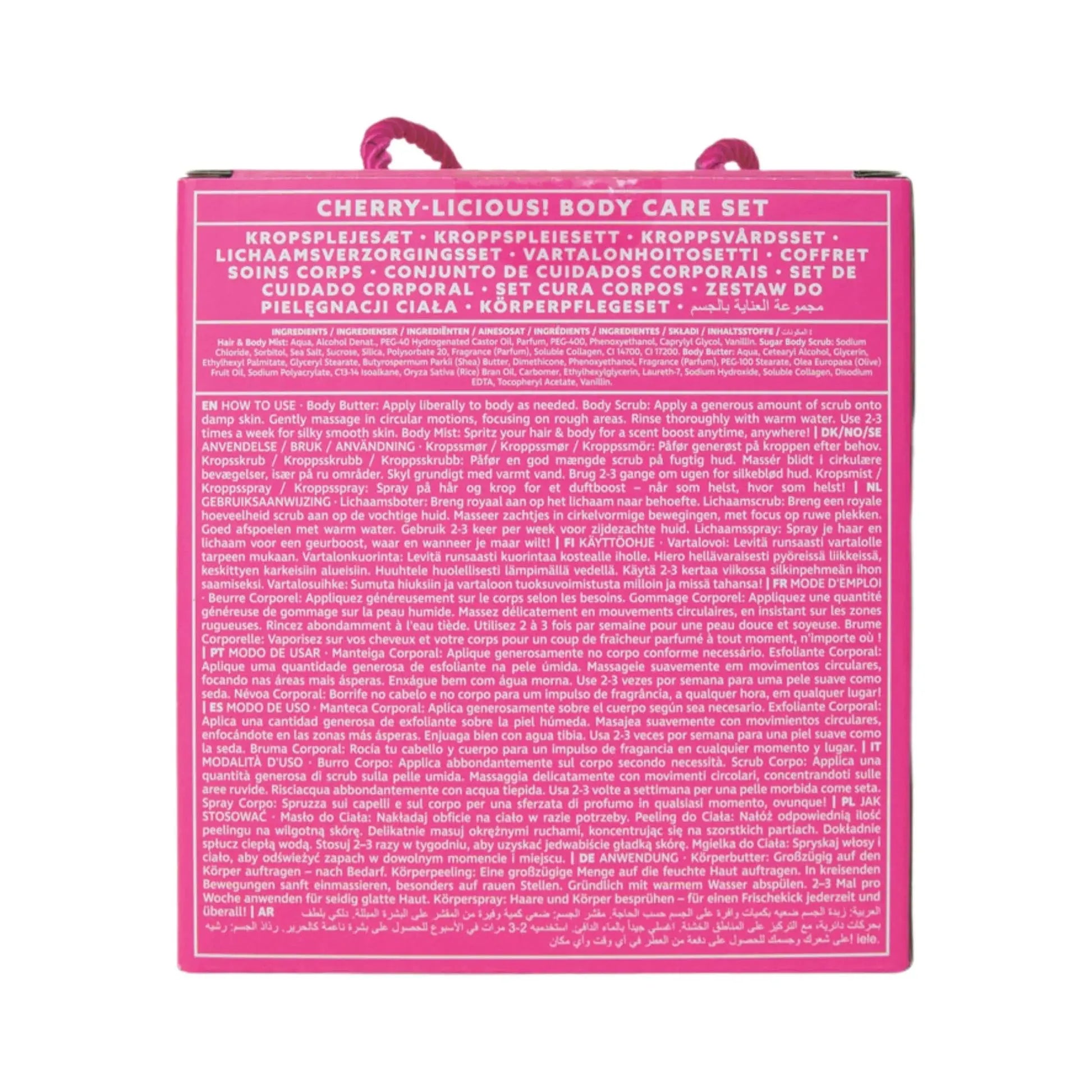 Perfekt für einen Pamper Moment oder als Geschenk, auch für dich selbst. Die Produkte in diesem Set pflegen und hydratisieren deine Haut, während der süße Kirschduft für einen fun, energiegeladenen Boost sorgt. Egal ob du ausgehst oder zu Hause entspannst, mit diesem Set bist du immer on point und glowing!