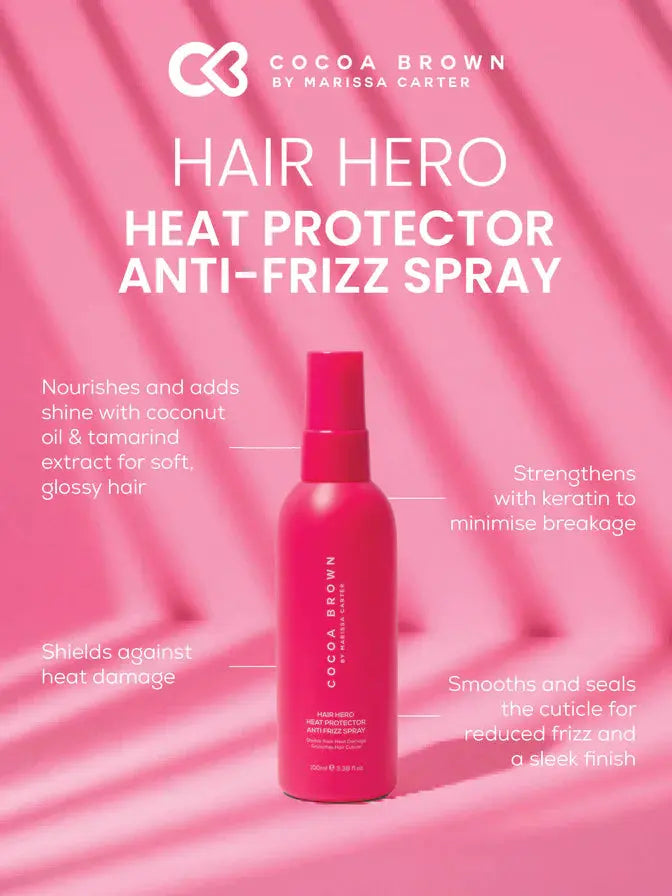 Das Cocoa Brown Hair Hero Heat Protection Anti Frizz Spray ist dein ultimativer Styling-Sidekick für glattes, glänzendes und frizzfreies Haar. Dieses leichte Leave-in-Spray schützt deine Längen vor Hitze und bändigt gleichzeitig fliegende Härchen für ein salonreifes Finish: jedes Mal.