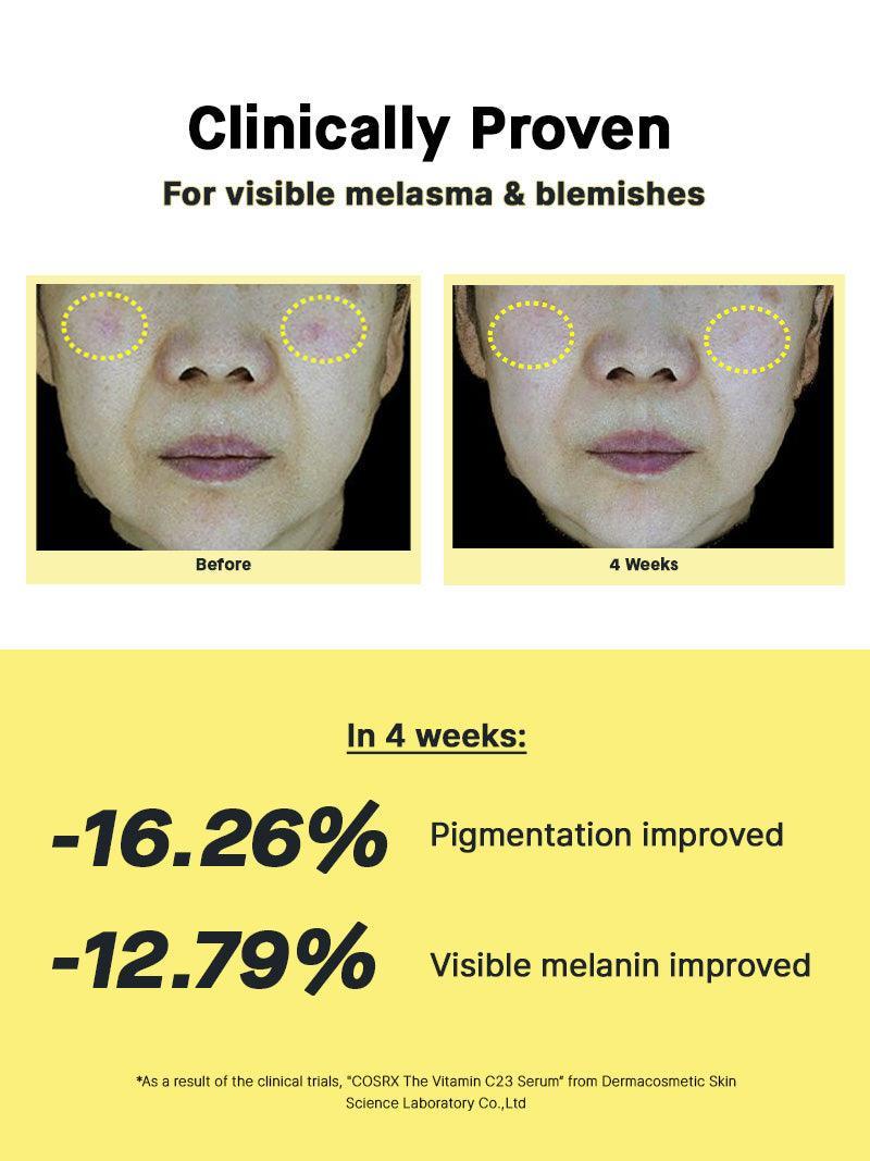 Das COSRX The Vitamin C 23 Serum ist ein kraftvolles Vitamin-C-Serum mit ganzen 23 % reinem Vitamin C. Dieses Serum wurde speziell für Hauttypen entwickelt, die einen extra Boost brauchen – jedoch nicht für empfindliche Haut geeignet. Es wirkt gegen fahle Haut, Hyperpigmentierung, Aknenarben, Falten und feine Linien. Hello Glow!