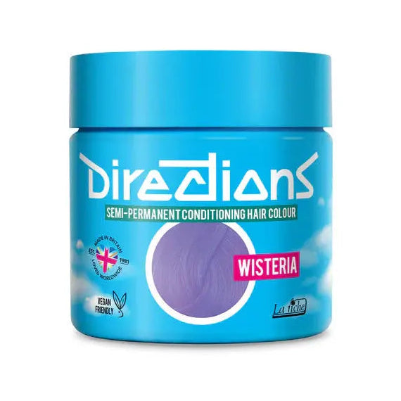 Directions Color #Wisteria ist eine semipermanente Haarfarbe in einem sanften Lavendel-Lila-Ton, die deinem Haar einen traumhaften Pastell look verleiht. Diese dezente Farbe mit kühlem Unterton ist perfekt für einen romantischen und eleganten Look, genauso edel wie die Blume, nach der sie benannt ist.