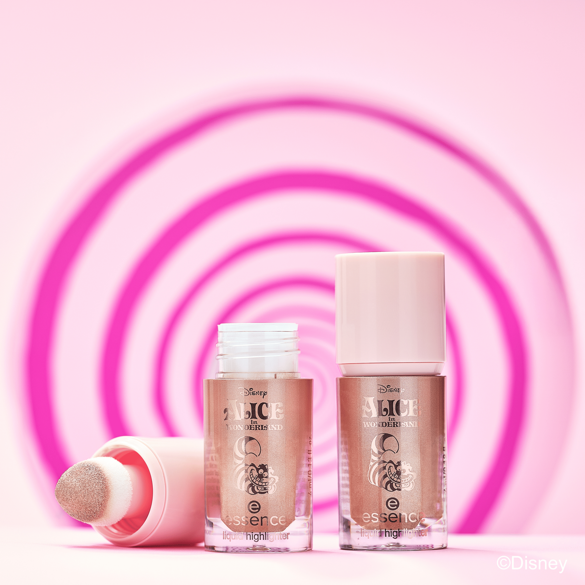 Der Essence Disney Alice in Wonderland liquid highlighter 01 Grin & Glow Hole nimmt dich mit auf eine magische Glow-Reise! Dieser flüssige Highlighter in einem bezaubernden Goldton verleiht deiner Haut dank ultrafeiner Schimmerpartikel ein sanftes, strahlendes Finish.