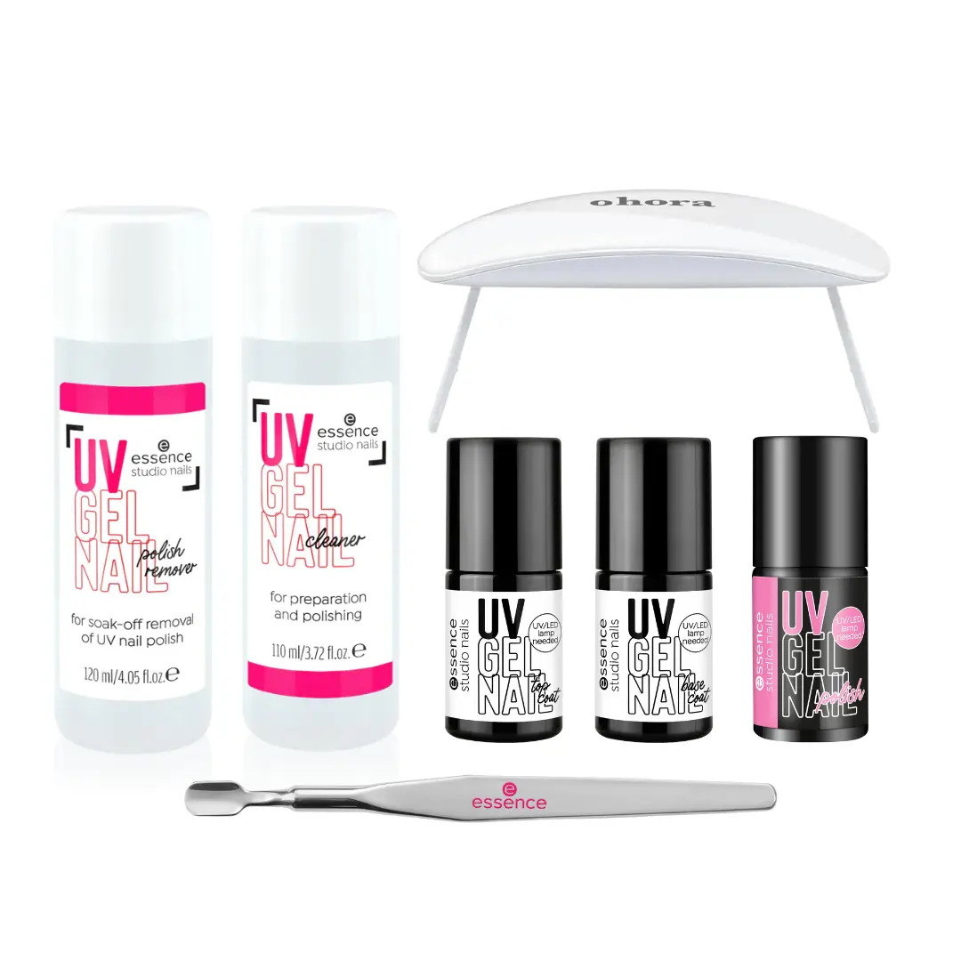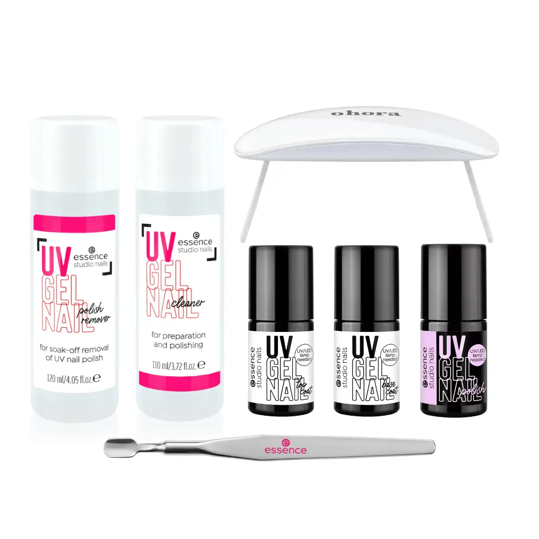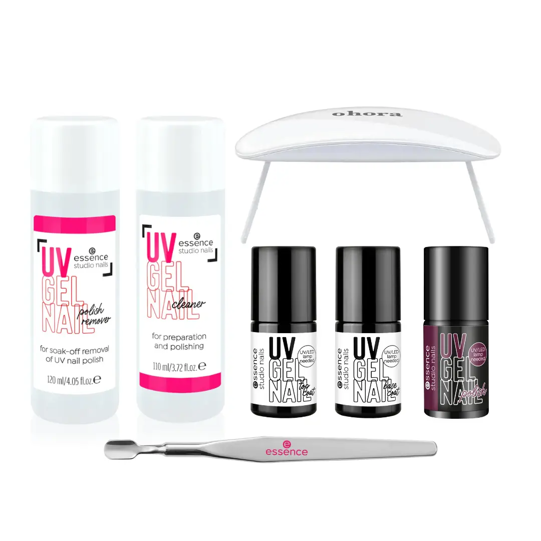UV color gel 5 ml.: Aliphatic Polyesterurethane Acrylate, Hydroxypropyl Methacrylate, Ethyl Acetate, Butyl Acetate, Aliphatic Urethane Acrylate, Ethyl Trimethylbenzoyl Phenylphosphinate, Nitrocellulose, Silica Dimethyl Silylate, Polyacrylate Polymer, Bis(Glyceryl Dimethacrylate) Pyromellitate, Acetyl Tributyl Citrate, Isopropyl Alcohol, Acrylates Copolymer, Phosphoric Acid Polyester, Biotin, Caffeine, Aqua (Water), Glyceryl Dimethacrylate, BHT, Hydrolyzed Corn Protein, Hydrolyzed Soy Protein, Hydrolyzed Wheat Protein, P-Hydroxyanisole, MEK, Phosphoric Acid, Phenoxyethanol, CI 47005 (Yellow 10 Lake), CI 60725 (Violet 2), CI 74160, CI 77891 (Titanium Dioxide).