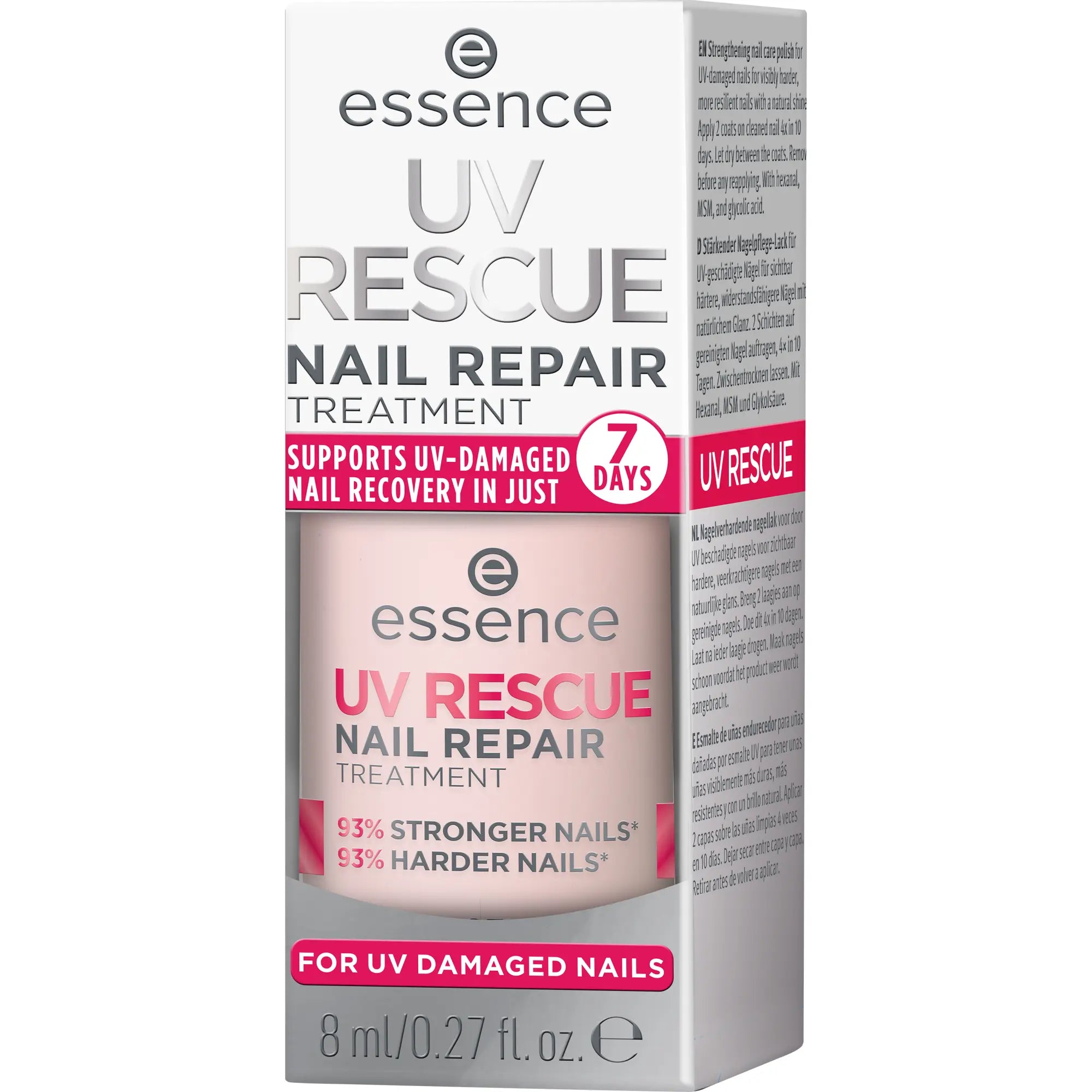 Die Essence UV Rescue Nail Repair Treatment 01 ist die Rettung für Nägel, die nach UV-Gel-Maniküren etwas Extra-Pflege brauchen. Diese pflegende Behandlung in einem zarten Rosaton verleiht den Nägeln nicht nur einen natürlichen Glanz, sondern hilft auch aktiv dabei, beschädigte Nageloberflächen zu regenerieren.