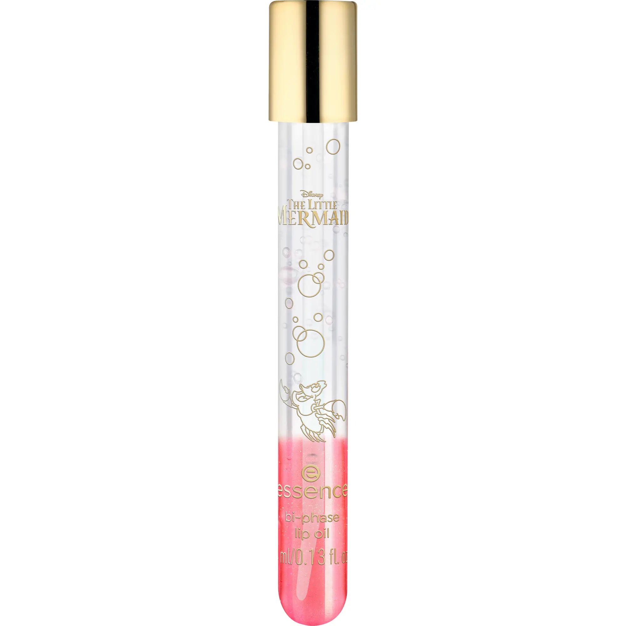 Das Essence X Disney The Little Mermaid Bi-phase Lip Oil 02 Swim Towards Your Dreams verleiht deinen Lippen einen wunderschönen glossy Glow mit einer magischen Ozean Vibe. Das transparente und korallenfarbene Öl mit goldenem Schimmer sorgt für ein strahlendes Finish und lässt deine Lippen sofort voller und gepflegter aussehen.
