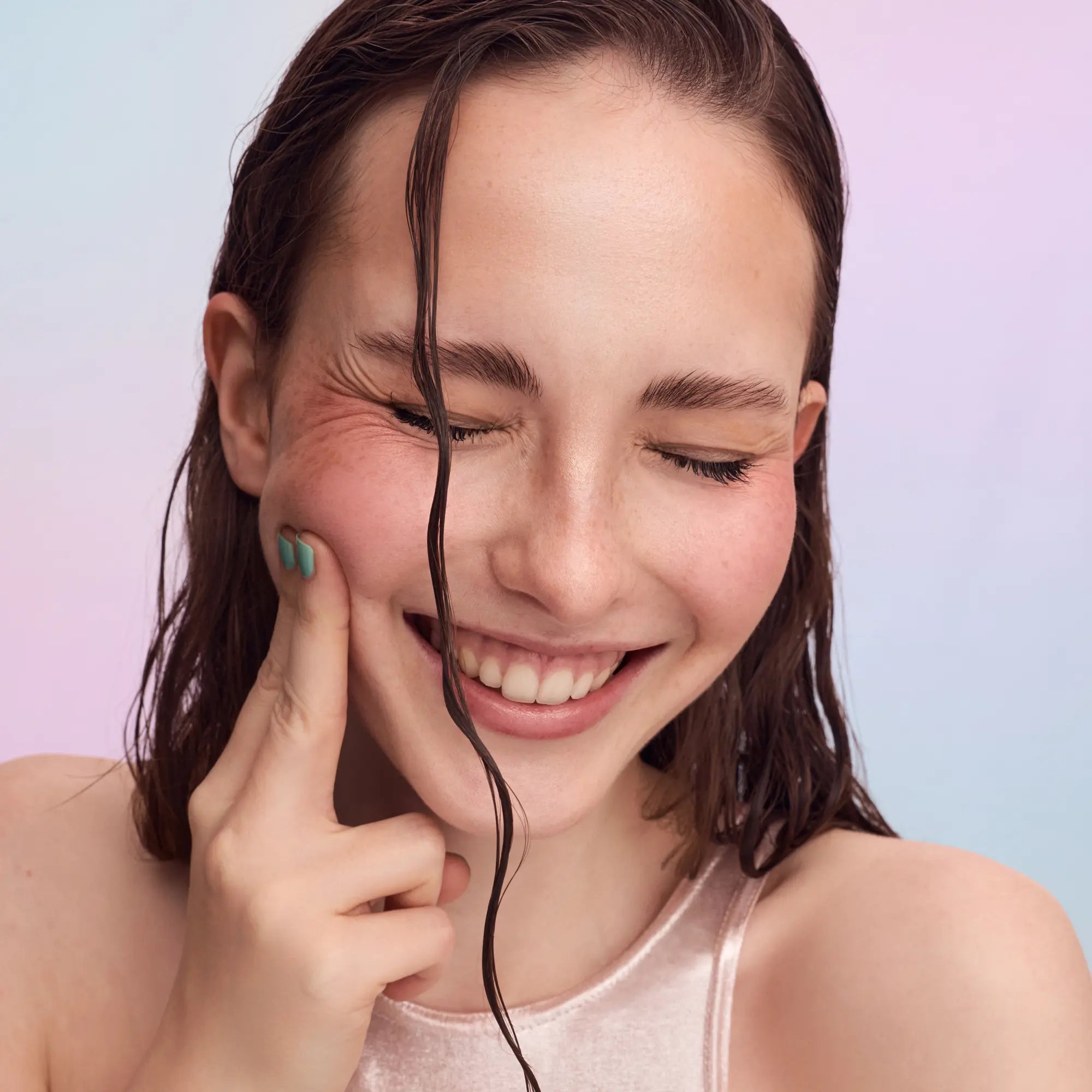 - Trage es leicht auf die Apfel deiner Wangen auf.
