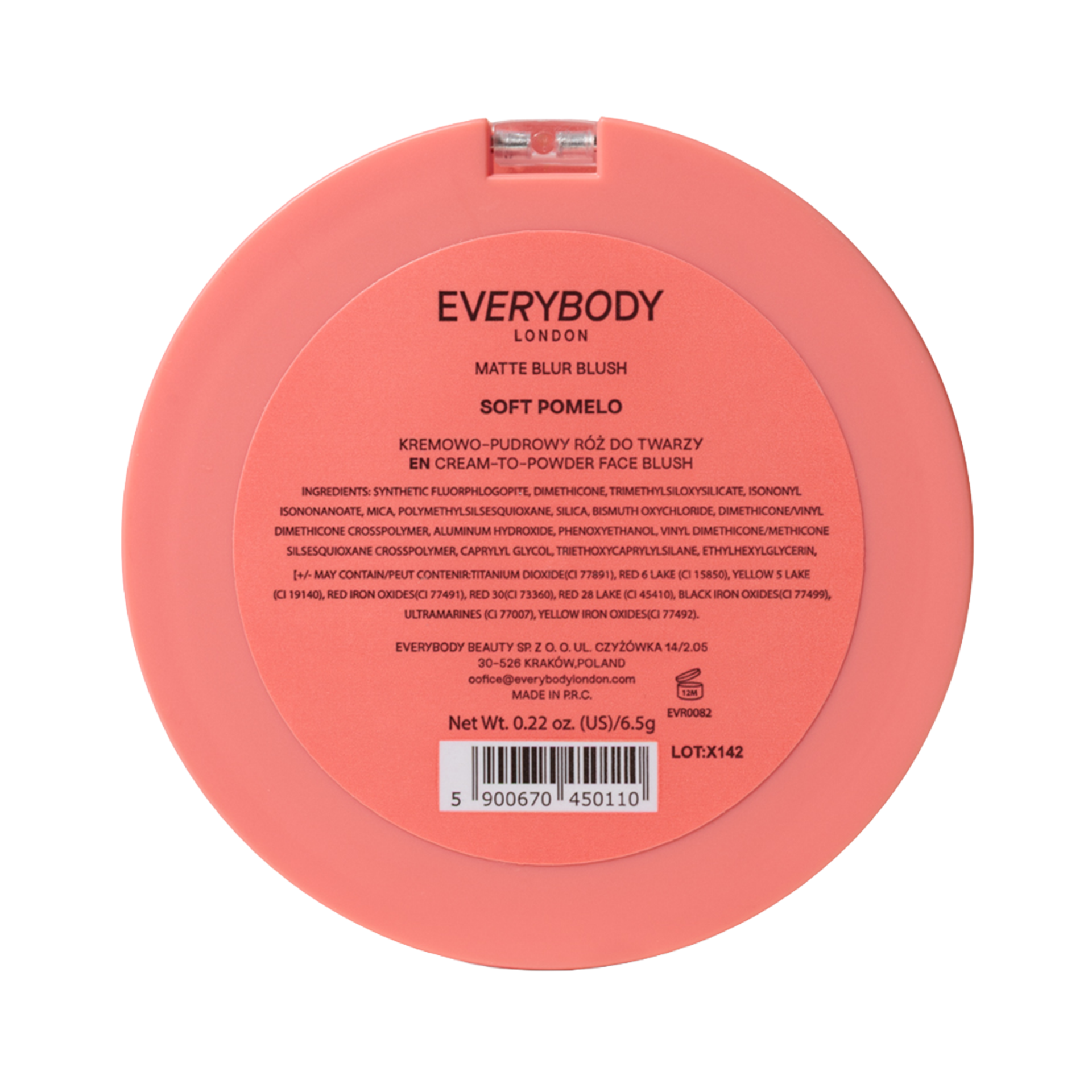 Der Everybody London Matte Blur Blush Soft Pomelo ist ein seidig-weiches Cream-to-Powder-Rouge, das mühelos mit der Haut verschmilzt und für einen natürlichen Flush mit mattem Soft-Focus-Finish sorgt. Die cremige Textur verwandelt sich beim Auftragen in eine luftige Puderformel, ganz ohne Klebrigkeit oder pudriges Gefühl.