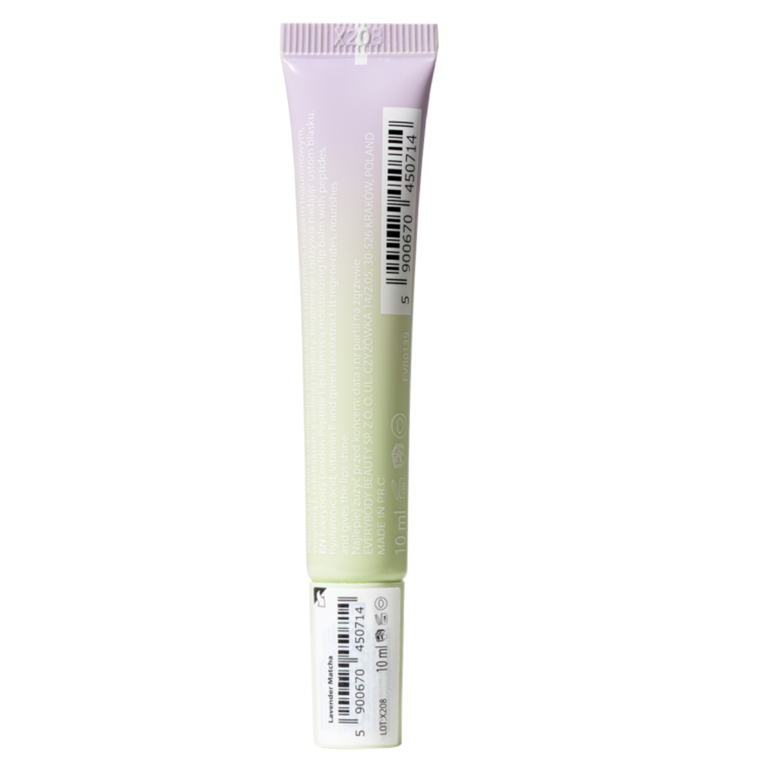 Der Everybody London Peptide Lip Balm Lavender Matcha Latte ist dein neues Selfcare-Moment in Stickform. Dieser Lippenbalsam kombiniert den beruhigenden Duft von Lavendel mit den kraftvollen Antioxidantien aus Matcha und hautregenerierenden Peptiden. Das Ergebnis? Zart gepflegte Lippen, die gesund aussehen und wunderbar duften.