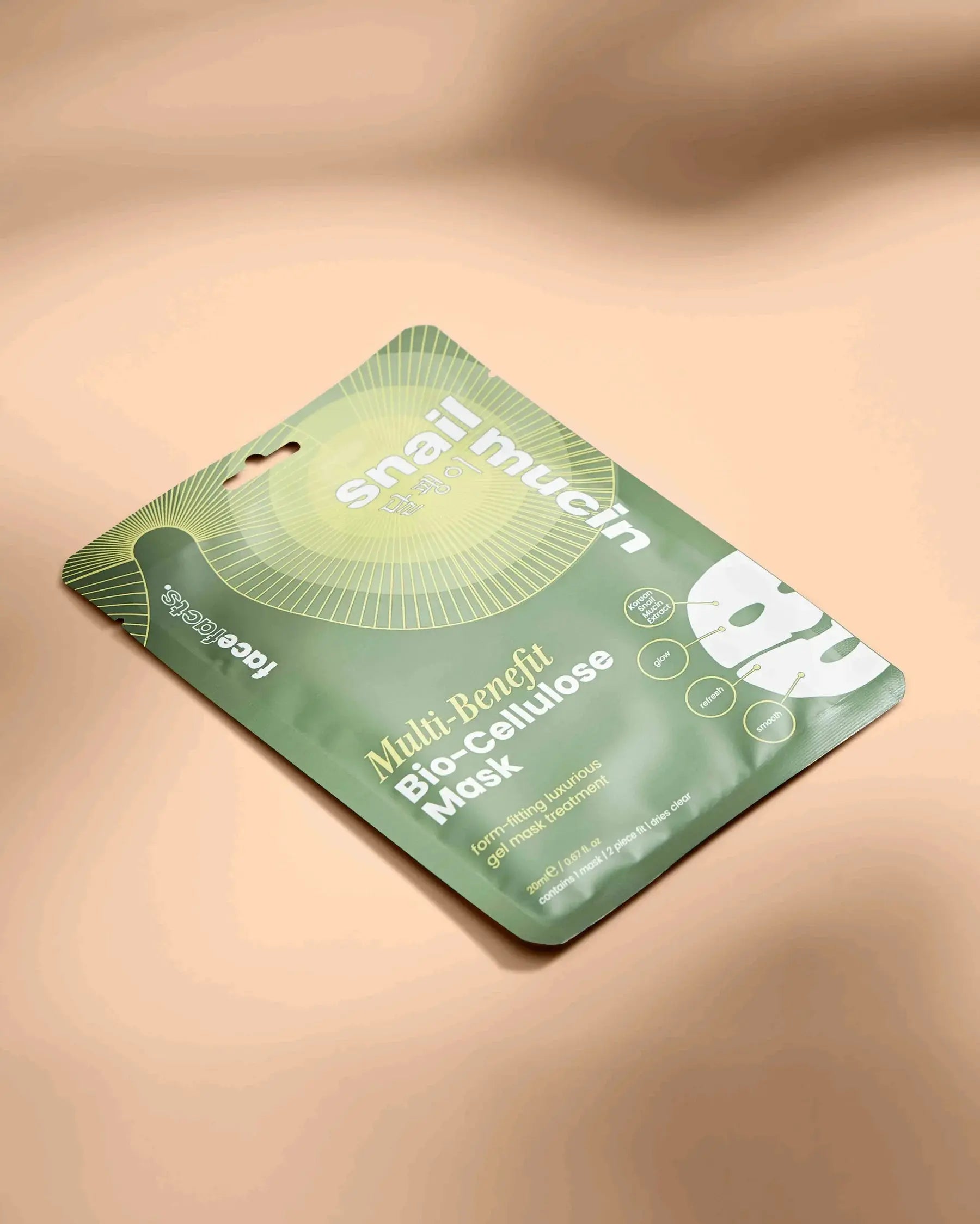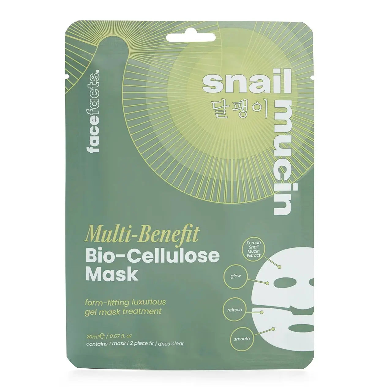 Die Face Facts Snail Mucin Multi-Benefit Biocellulose Masque ist eine luxuriöse, formstabile Gelmaske, die die Haut intensiv mit Feuchtigkeit versorgt und sichtbar revitalisiert. Diese zweiteilige Sheetmaske passt sich perfekt an dein Gesicht an und fühlt sich an wie eine zweite Haut: für ein Spa-Erlebnis zu Hause. Die transparente Formel ist angereichert mit kraftvollen Inhaltsstoffen wie regenerierendem Snail Mucin, feuchtigkeitsspendender Hyaluronic Acid, beruhigender Cica, pflegendem Squalane und festigendem Collagen.