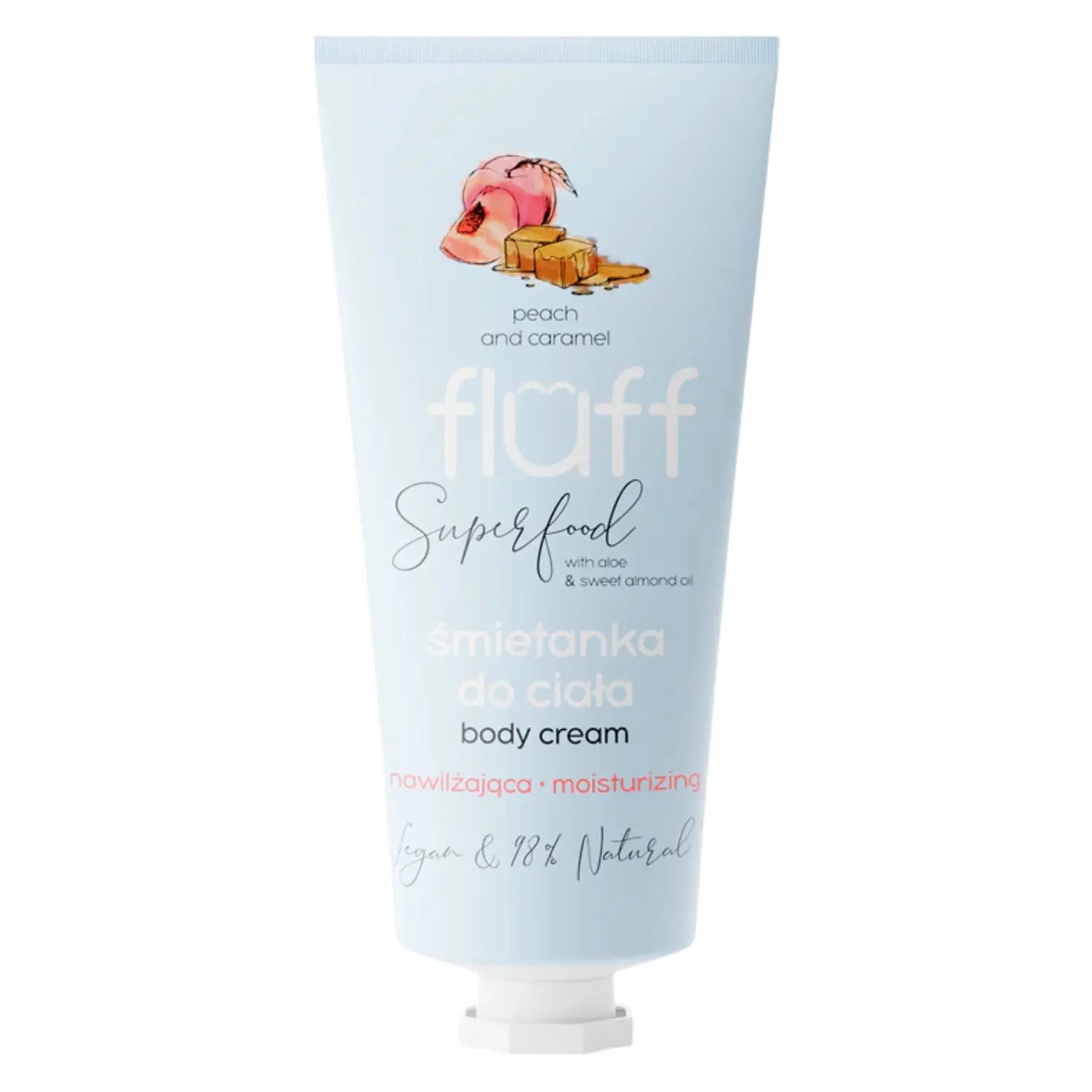 Die Fluff Body Cream Peach & Caramel Moisturizing ist dein süßer Treat für eine intensiv hydratisierte und angenehm gepflegte Haut. Diese reichhaltige Superfood Körpercreme nährt deine Haut tiefgehend und gibt ihr genau das, was sie braucht, um sich weich und geschmeidig anzufühlen.