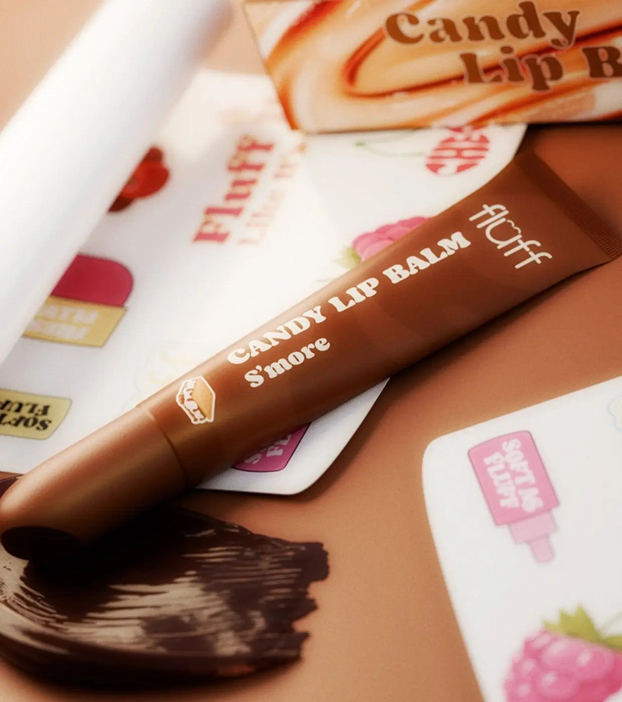 Der Fluff Candy Lip Balm S’more ist ein echtes Guilty Pleasure für deine Lippen. Inspiriert von der unwiderstehlichen Kombination aus Schokolade, Keks und Marshmallow umhüllt dieser Lip Balm deine Lippen mit einem herrlichen, fast süchtig machenden gourmand Duft.