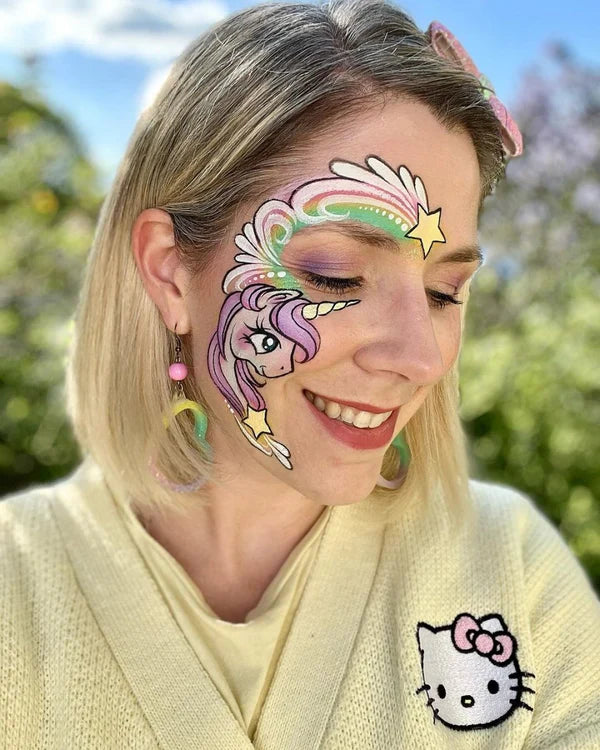 Die Fusion Body Art Face Painting Elodie's Pastel Delights Palette ist eine multifunktionale Palette, mit der du die besten Kreationen für Fasching oder eine Mottoparty zaubern kannst! Die Palette enthält 6 intensive Pastellfarben auf Wasserbasis. Diese Gesichtsfarbe ist hochpigmentiert und daher eine perfekte Basis für Ihr gesamtes SFX-Make-up. So erhalten Sie im Handumdrehen die schönsten Kreationen!