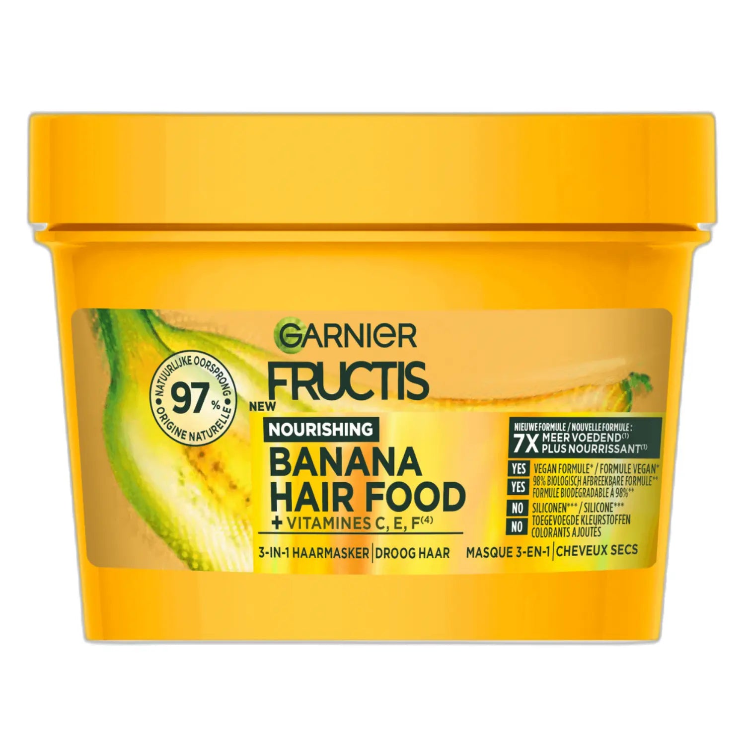 Die Garnier Fructis Hair Food Banana 3-in-1 Hair Mask ist deine ultimative Rettung für trockenes Haar. Diese cremige, weiche Formel mit Bananenextrakt nährt deine Haarsträhnen intensiv, ohne sie zu beschweren. Die erneuerte Formel ist mit Vitamin C, E und F geboostet und mit Sheabutter angereichert für zusätzliche Pflege.