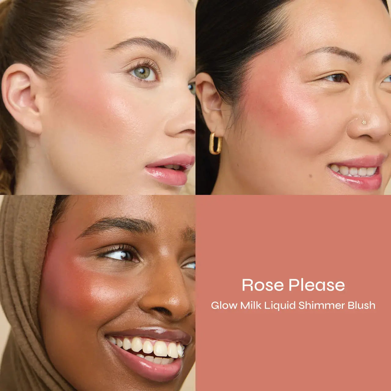 Der The Beauty Crop Glow Milk Liquid Shimmer Blush Rose Please verleiht deinen Wangen einen romantischen Rosy-Glow, der jedem Look sofort einen eleganten Touch verleiht. Mit dem praktischen Doe-Foot-Applikator lässt sich dieser flüssige Shimmer-Blush schnell und mühelos auftragen. Die leichte, seidige Formel verschmilzt nahtlos mit der Haut und sorgt für ein frisches, strahlendes Finish, das das Licht wunderschön einfängt.