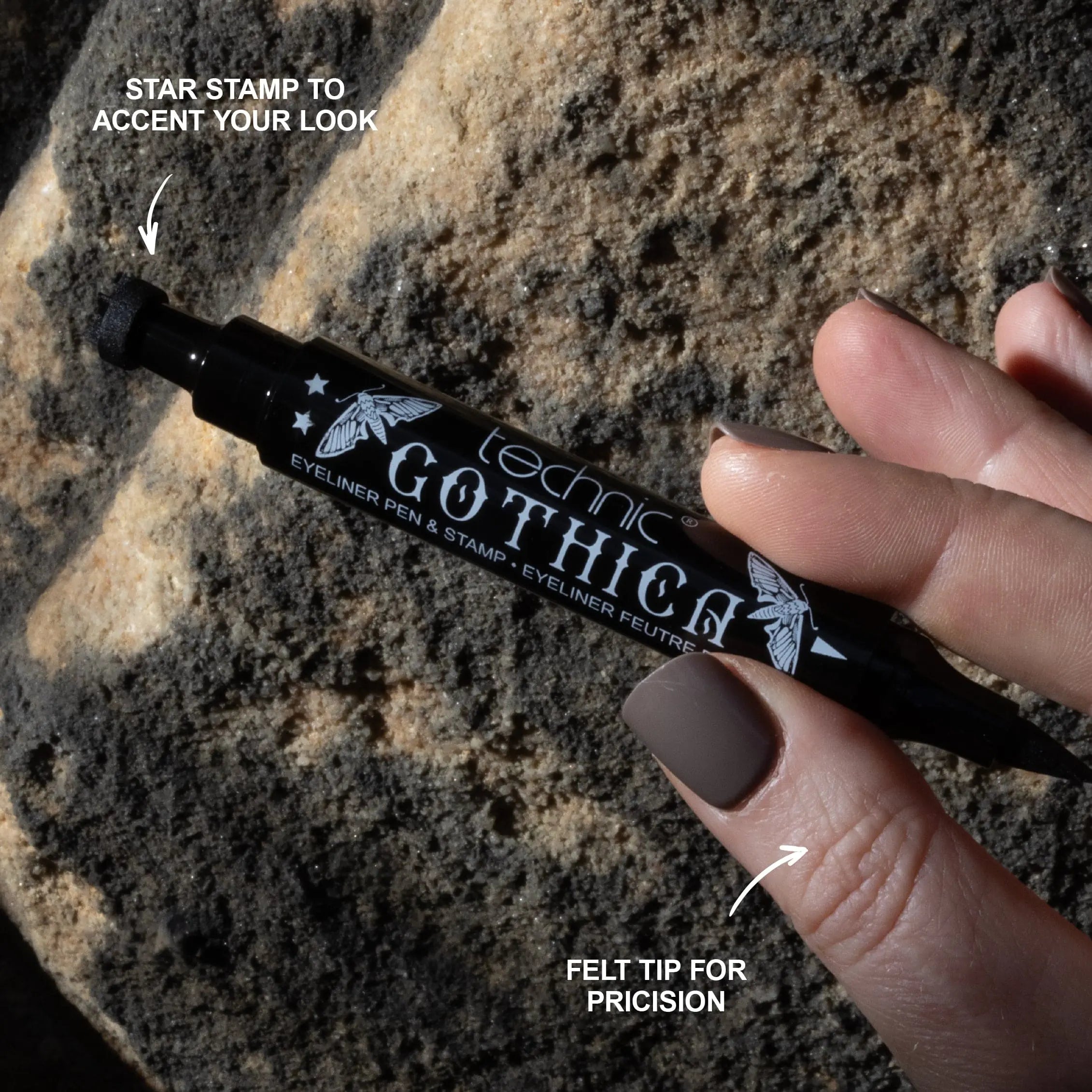 Der Technic Gothica Eyeliner Pen & Star Stamp ist perfekt für alle, die ihrem Look das gewisse Etwas verleihen möchten. Dieser doppelseitige Eyeliner hat auf der einen Seite eine feine Filzspitze für präzise, fließende Linien und auf der anderen Seite einen niedlichen Sternen-Stempel für magische Akzente. Ob du deinem Alltagslook einen Hauch von Glanz verleihst oder einen kompletten Fantasy-Vibe kreierst: dieses Tool ist dein perfekter Begleiter!