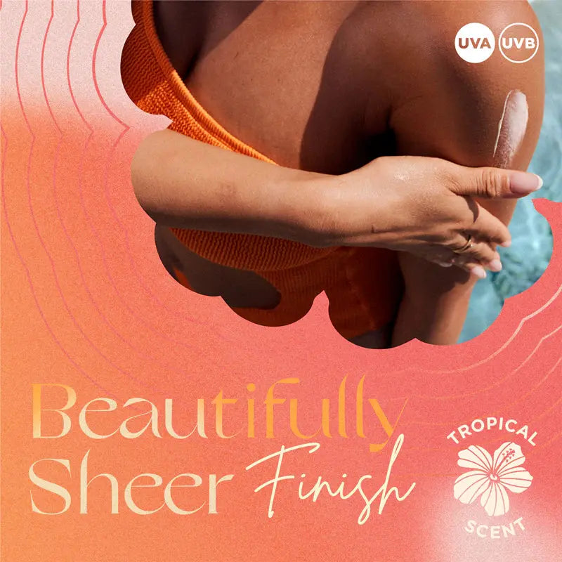 Aqua, Octocrylene, Glycerin, Ethylhexyl Salicylate, Alcohol Denat., Butyl Methoxydibenzoylmethane, C12-15 Alkyl Benzoate, Tapioca Starch, Polyurethane-34, Bis-Ethylhexyloxyphenol Methoxyphenyl Triazine, Dibutyl Adipate, VP/Eicosene Copolymer, Ethylhexyl Triazone, Cetearyl Alcohol, Phenoxyethanol, Glyceryl Stearate, Xanthan Gum, Sodium Stearoyl Glutamate, Tocopheryl Acetate, Parfum, Panthenol, Acrylates/C10-30 Alkyl Acrylate Crosspolymer, Butyrospermum Parkii Butter, Sodium Ascorbyl Phosphate, Disodium EDTA, Sodium Hydroxide, Hexyl Cinnamal, Linalool, Psidium Guajava Fruit Extract, Plumeria Acutifolia Flower Extract, Passiflora Incarnata Fruit Extract, Mangifera Indica Fruit Extract, Carica Papaya Fruit Extract.