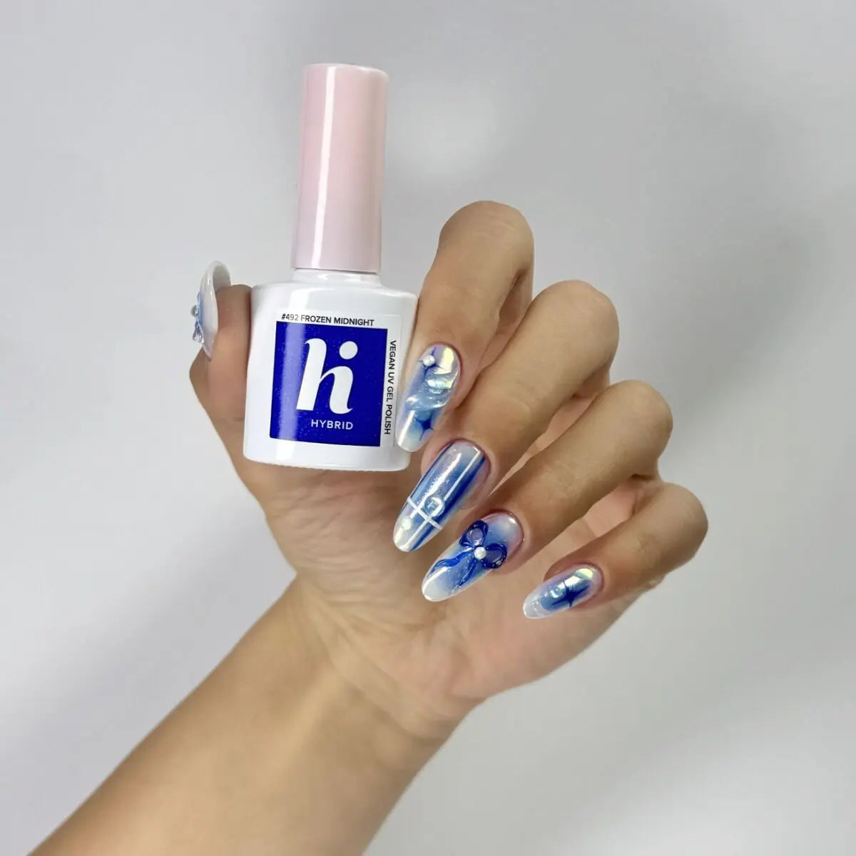 Der Hi Hybrid 492 Frozen Midnight UV Gel Polish ist ein tiefes navyblaues UV Gel mit intensivem blauem Schimmer, das deinen Nägeln einen geheimnisvollen Glanz verleiht. Die Farbe ist leicht transparent, wodurch Tiefe entsteht und deine Maniküre eine einzigartige Dimension erhält. Perfekt für alle, die einen auffälligen und kühlen Look mögen.