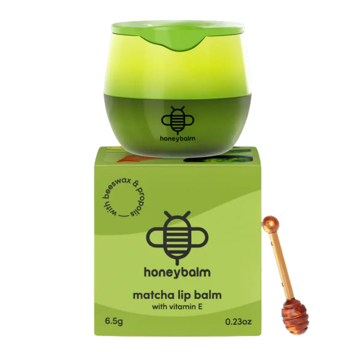 Die Formel schmilzt auf den Lippen und sorgt sofort für ein glattes und gepflegtes Gefühl. Du kannst ihn täglich verwenden, als pflegende Basis unter dem Lippenstift oder für einen kleinen Selfcare Moment zwischendurch. Der Honeybalm Matcha macht die Lippen weich, geschmeidig und leicht glänzend. Lippenpflege mit grünem Twist.