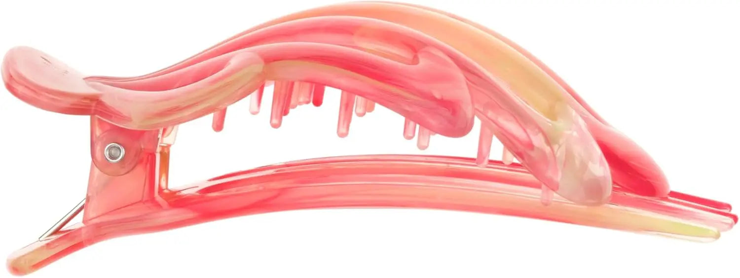 Der Coral Hug wurde mit einer kopffreundlichen, flachen Form entwickelt, die sich deiner Kopfform anpasst. Und trotz des bequemen Tragegefühls bietet diese Spange erstaunlich viel Halt: Dein Haar bleibt sicher an Ort und Stelle, auch wenn du dich bewegst. Ob auf der Matte oder zurückgelehnt im Flugzeug: diese Spange vereint Halt und Stil in einem.