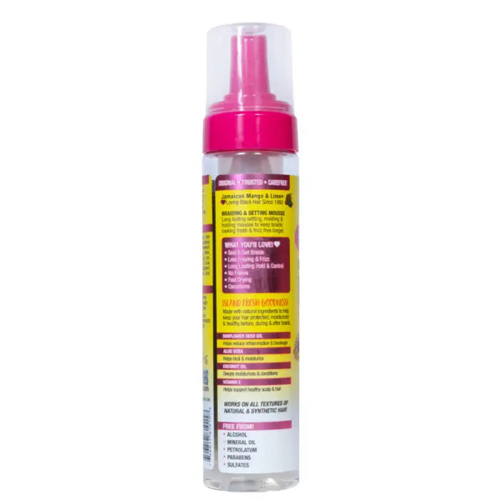Das Jamaican Mango & Lime Braiding & Setting Mousse ist dein Go-to-Mousse für perfekt gestylte, frizzfreie Zöpfe und Twists, die halten. Dieses leichte Mousse sorgt für langanhaltenden Halt, ohne dass dein Haar hart oder crunchy wird, und bändigt mühelos abstehende Haare. Ideal zum Setzen, Definieren und Pflegen von schützenden Frisuren wie Zöpfen, Locs und Twists.