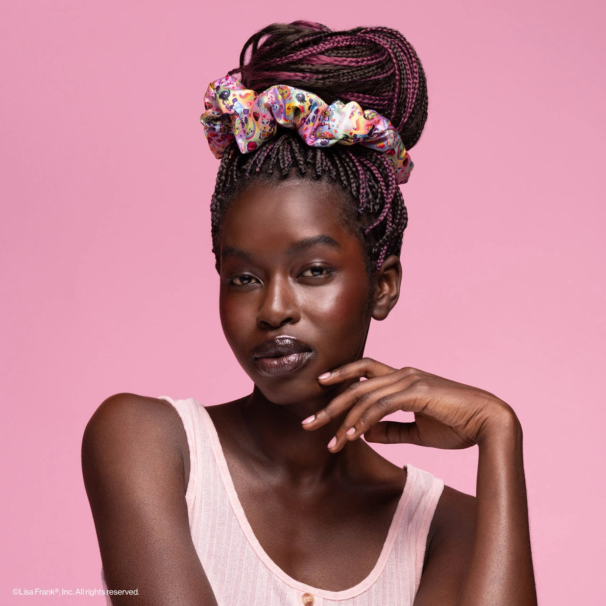 Das Kitsch x Lisa Frank Satin Pillow Scrunchie The Fantastic World Of Lisa Frank bringt deine Haartage auf ein magisches Level! Dieses Set aus zwei übergroßen Scrunchies ist inspiriert von der bunten und ikonischen Welt von Lisa Frank: perfekt für alle, die Spaß, Flair und fabelhaftes Haar lieben. Ob beim Schlafen oder für einen bequemen, aber süßen Look am Tag: diese Scrunchies sind dein neuer Go-to.