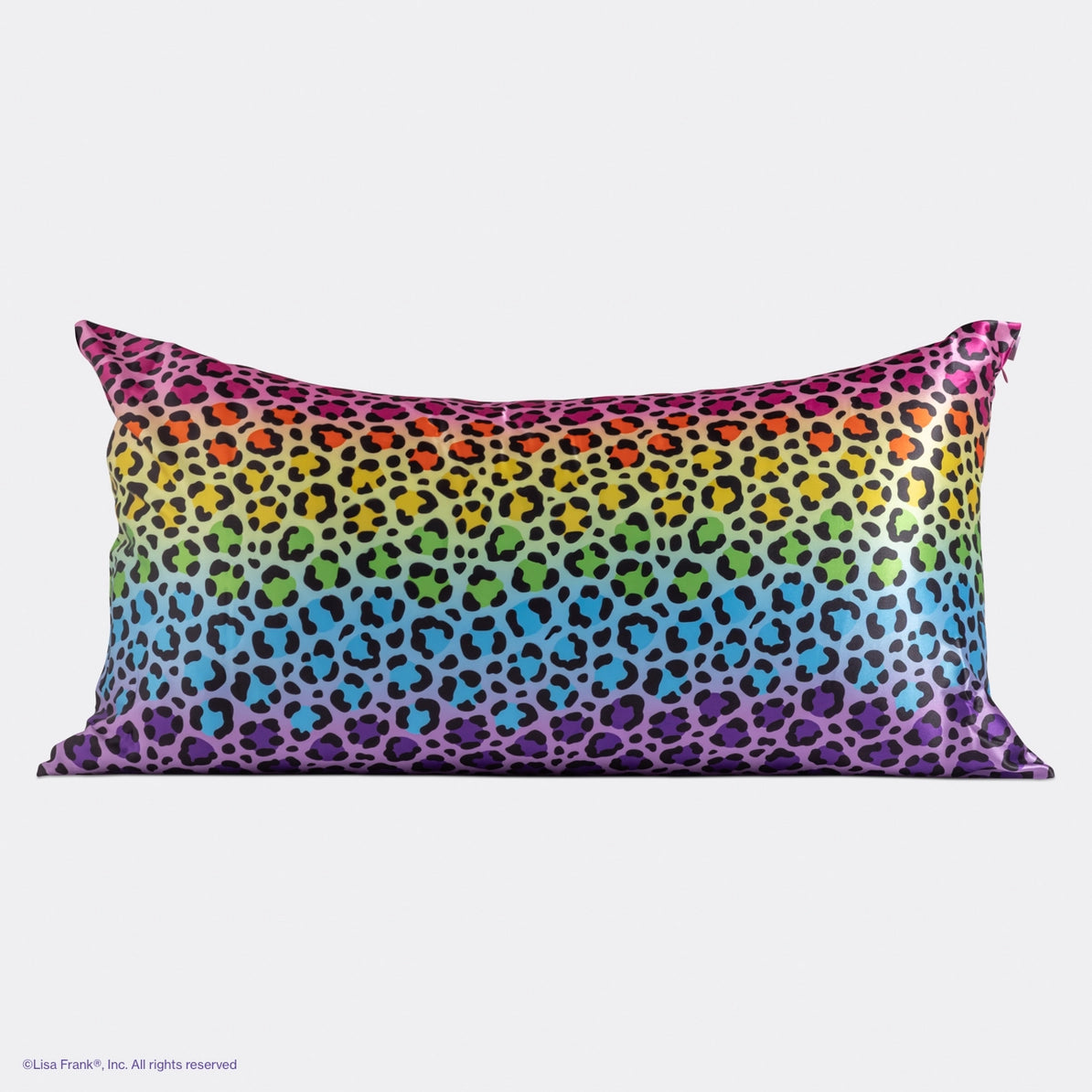 Der Kitsch x Lisa Frank Satin Pillowcase Rainbow Leopard King ist alles andere als langweilig: Dieser Kingsize-Kissenbezug ist eine Farbexplosion mit einem funky Leopardenmuster und dem ikonischen Lisa Frank-Logo in der Mitte. Perfekt für alle, die bold, bright & beautiful lieben und ihre Beauty-Routine im Schlaf aufs nächste Level bringen möchten.