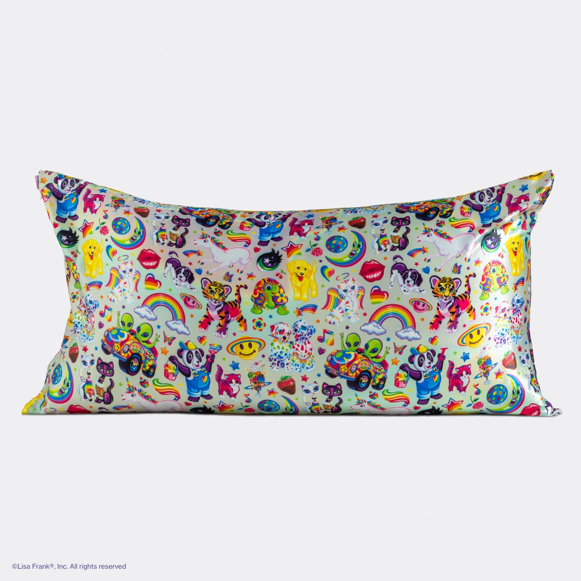 Der Kitsch x Lisa Frank Satin Pillowcase The Fantastic World Of Lisa Frank King ist ein bunter Traum, der wahr wird! Dieser Kingsize-Kissenbezug ist ein echtes Highlight für dein Schlafzimmer: mit einer Collage all deiner liebsten Lisa Frank-Besties, die dich in deinem Schönheitsschlaf begleiten. Süß, spaßig und funktional: genau das, was du für eine gute Nacht mit einem Hauch Nostalgie brauchst.