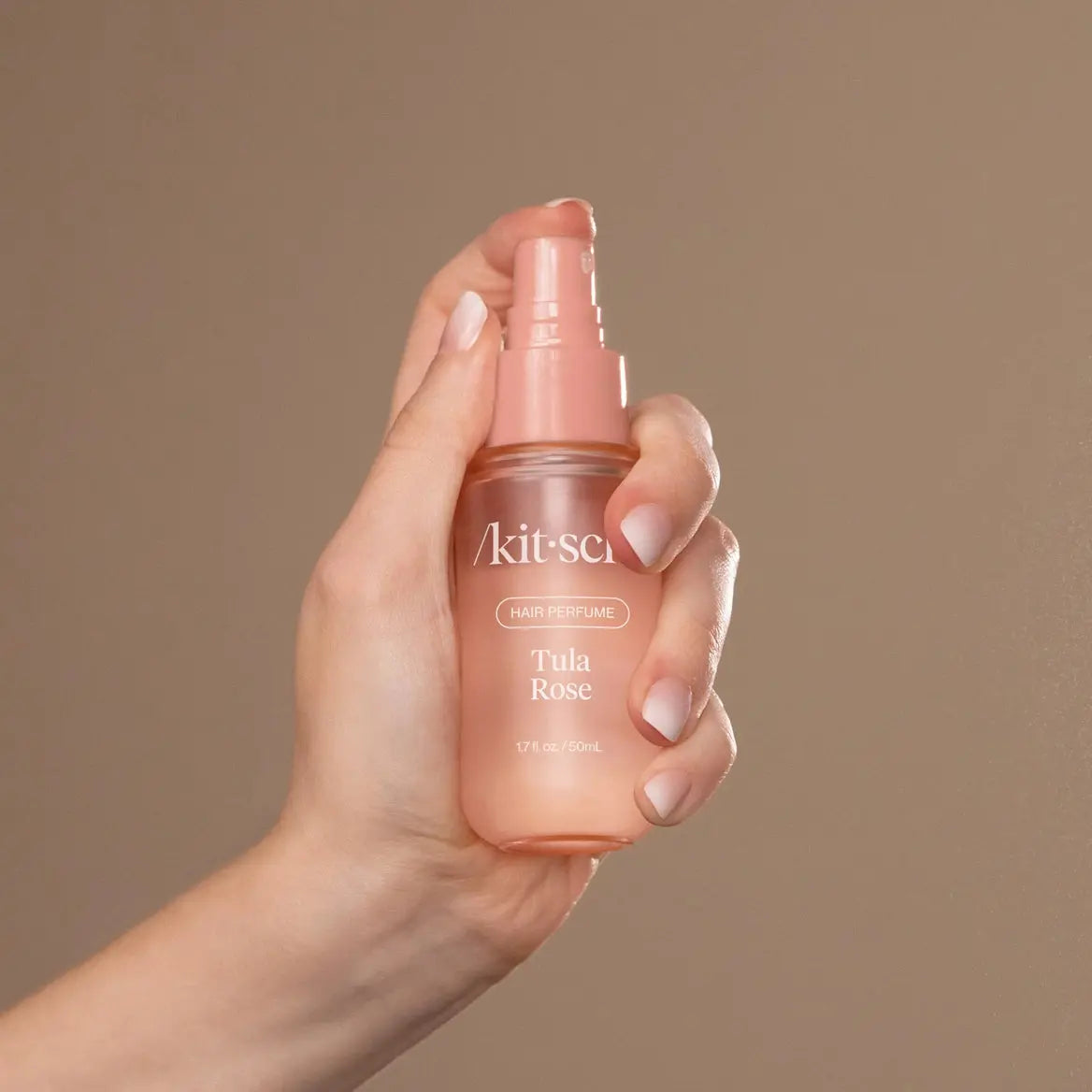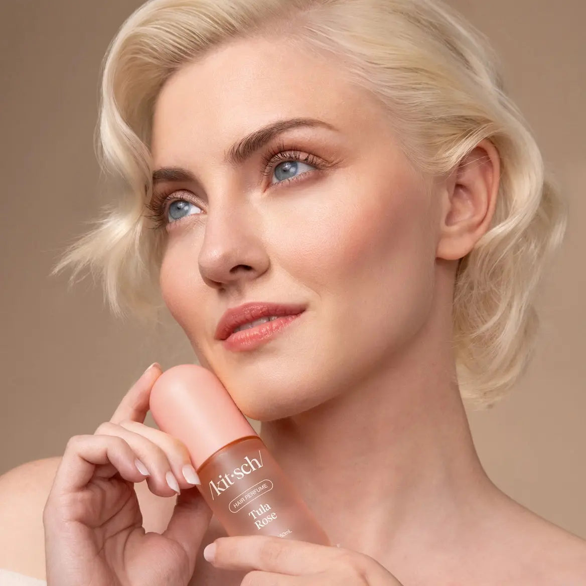 Das Kitsch Tula Rose Hair Perfume ist dein Go-to-Spray für sofortige Frische mit romantischen Vibes. Ein Spritzer: und es fühlt sich an, als würdest du bei Sonnenuntergang durch einen blühenden Rosengarten spazieren: traumhaft, oder? Der Duft ist eine sanfte, feminine Mischung aus frischer Rose, Freesie und cremiger Vanille, die dein Haar und deine Stimmung sofort aufhellt.