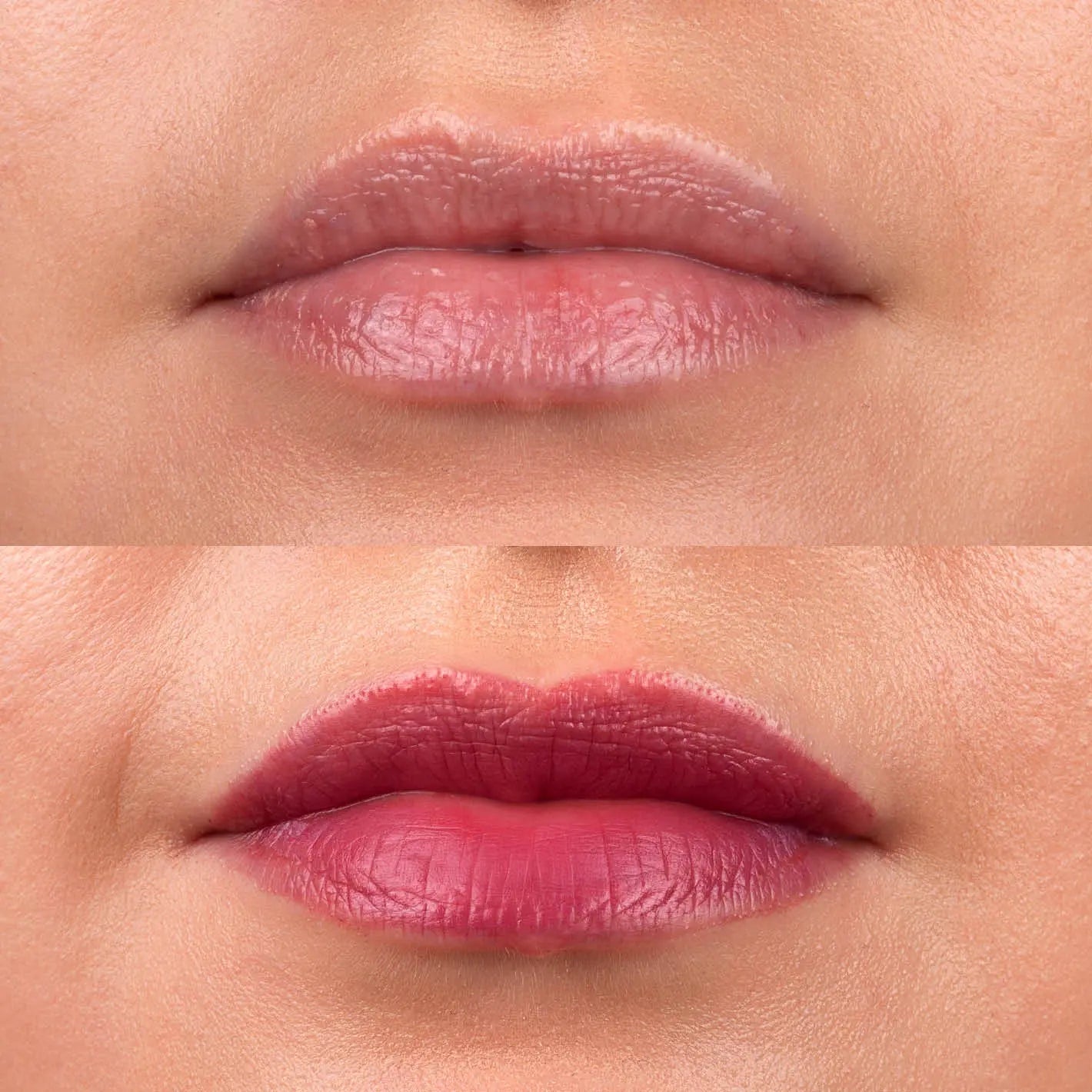 - Trage den Tint direkt auf saubere, trockene Lippen auf.