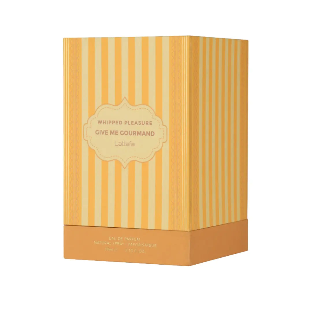 Lattafa Give Me Gourmand Whipped Pleasure Eau de Parfum inspiriert von Cheirosa 71 ist purer Komfort in einem Flakon denk an warme Decken, gemütliche Vibes und eine ordentliche Portion Schlagsahne. Dieser köstliche Gourmand-Duft öffnet sich mit süßem caramel popcorn und einem Hauch von salted caramel. Danach folgt eine sanfte Milch-Note zusammen mit einem dezenten blumigen Hauch von Jasmin.