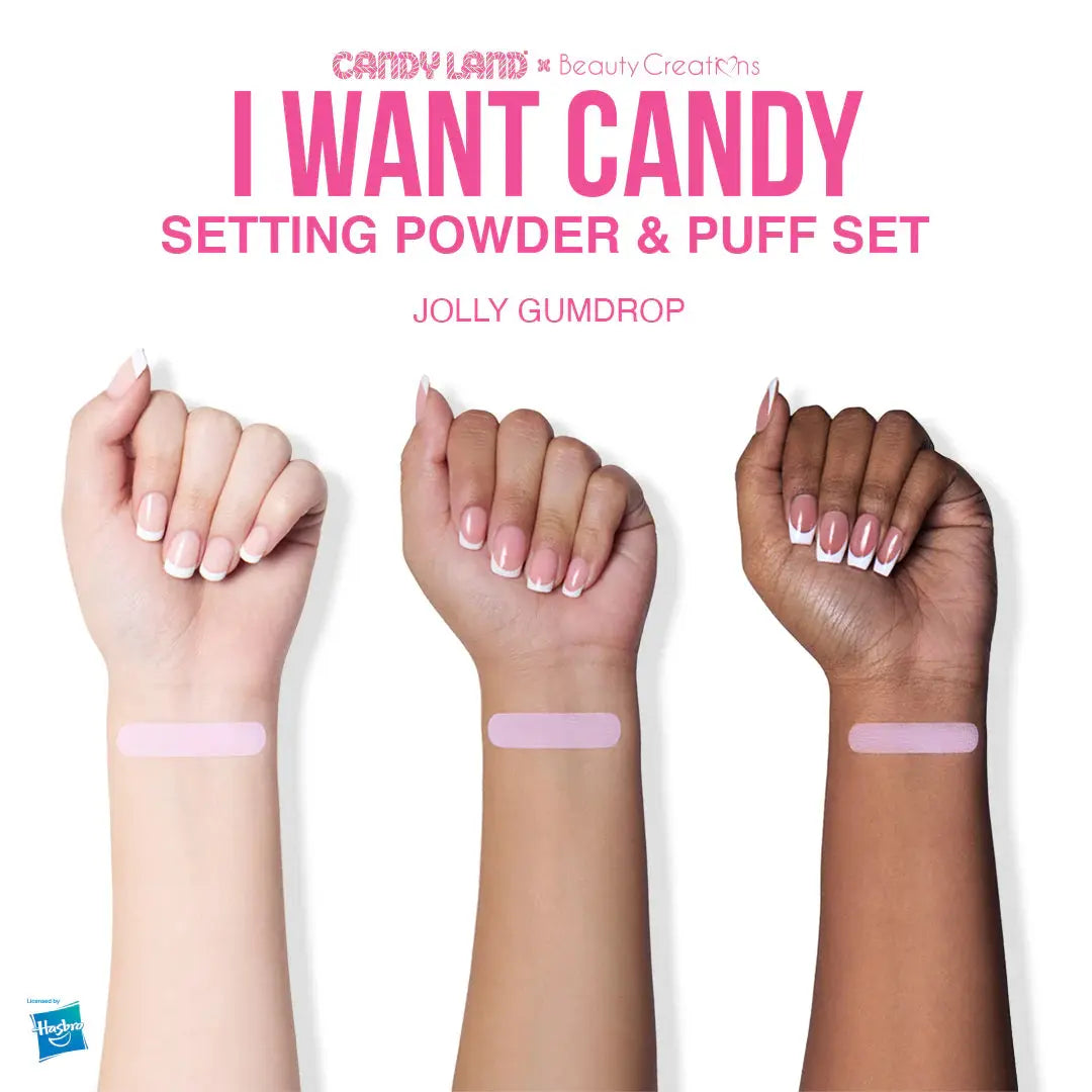 Das Beauty Creations Loose Powder & Puff Set I Want Candy ist ein süßer Traum, der dein Make-up nicht nur fixiert, sondern auf das nächste Level bringt! Dieses Set enthält das Jolly Gumdrop Loose Powder in einem pastell-lila Farbton: perfekt, um mittlere bis gebräunte Hauttöne mit goldenem Unterton aufzuhellen und zu mattieren: mit einer Prise Candy-Land-Magie. Und ja: Es duftet auch nach Lollis.