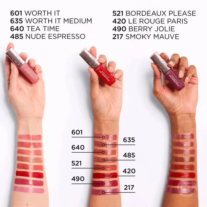 Der L'Oréal Paris Hyaluron Tint Lipstain 640 Tea Time ist dein neues Must-have, wenn du gepflegte Lippen mit einer langanhaltenden, frischen Farbe liebst. Dieser flüssige Lipstain kombiniert den Komfort eines Serums mit der Haltbarkeit eines Stains: leicht, feuchtigkeitsspendend und super angenehm zu tragen.